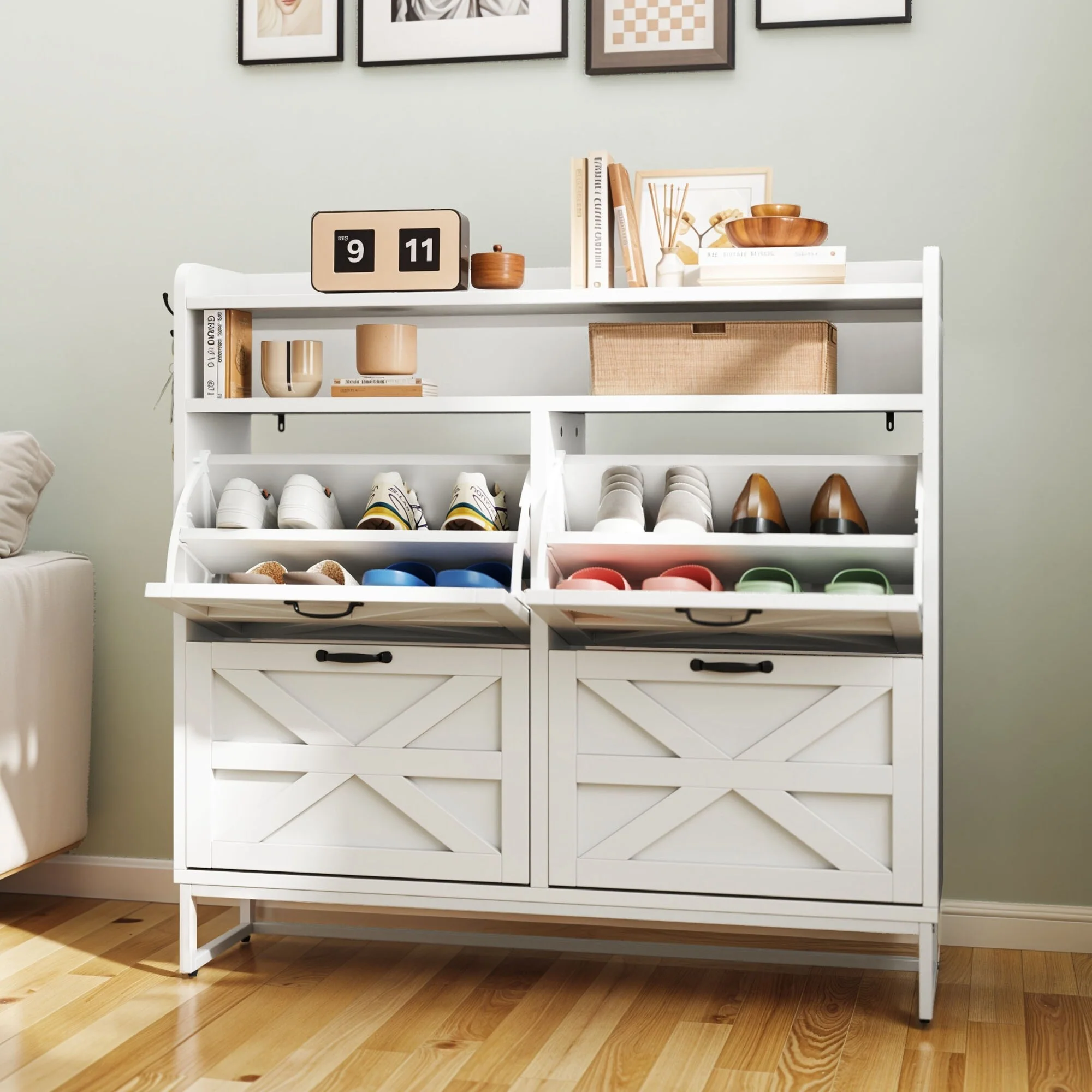 Timechee Grey Entryway Shoe Spcase Saving Cabinet with 3 Drawers