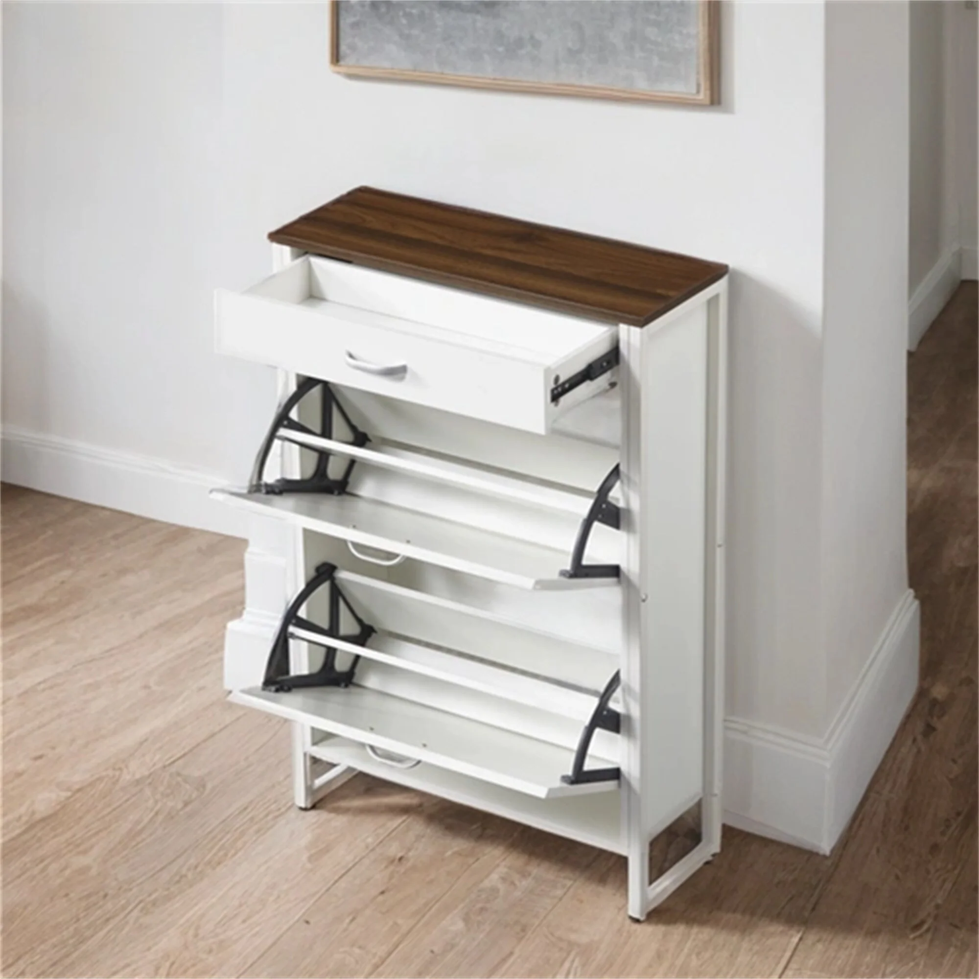 Wood Modern Shoe Cabinet with Flip-Top Drawers