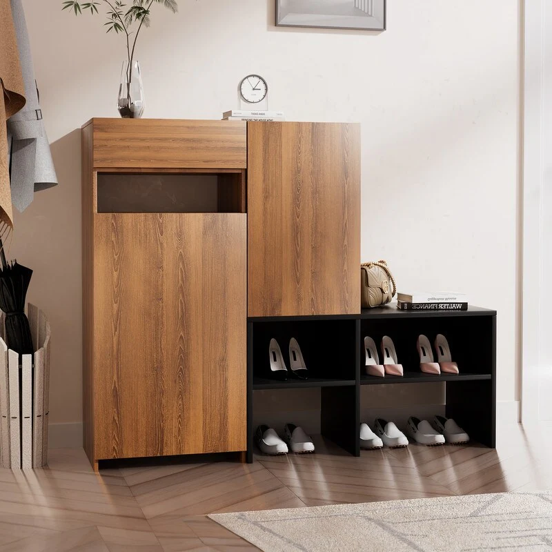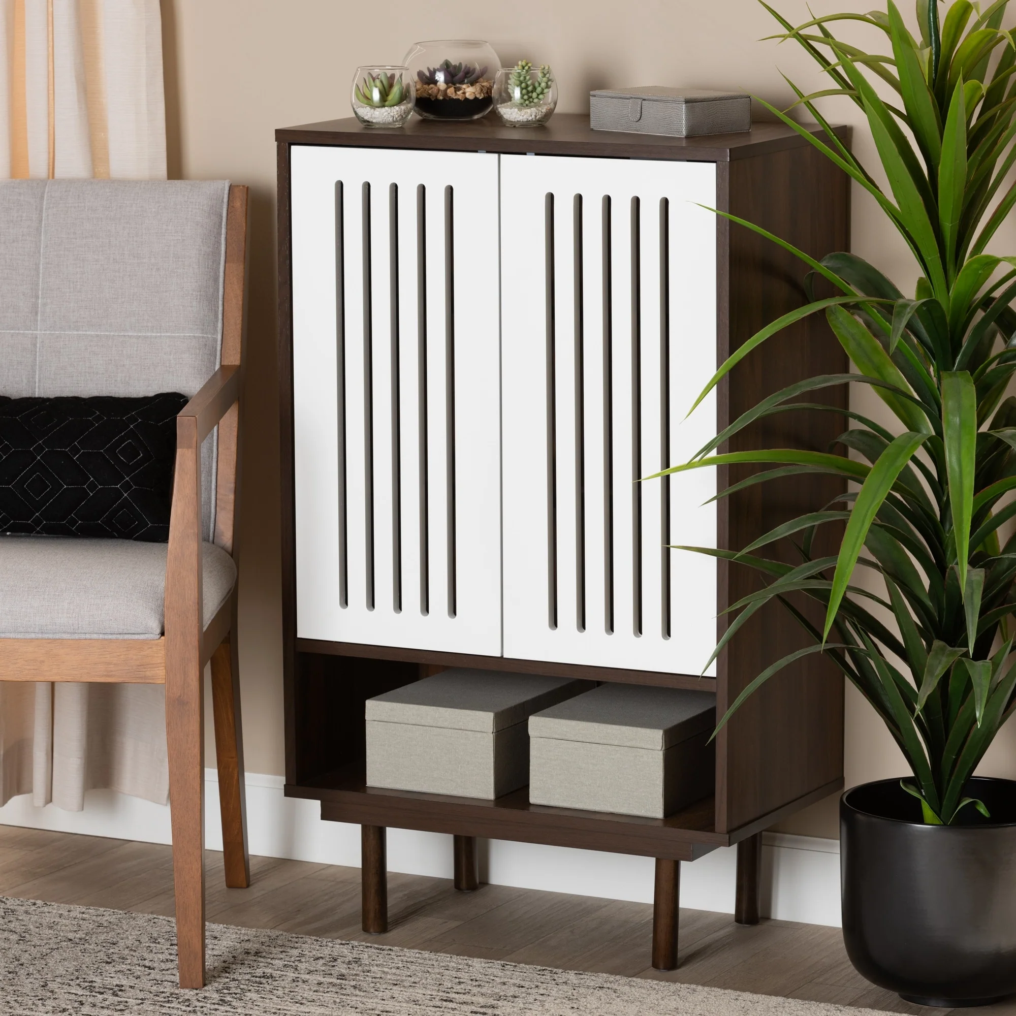 Meike Mid-Century Modern Two-Tone 2-Door Shoe Cabinet