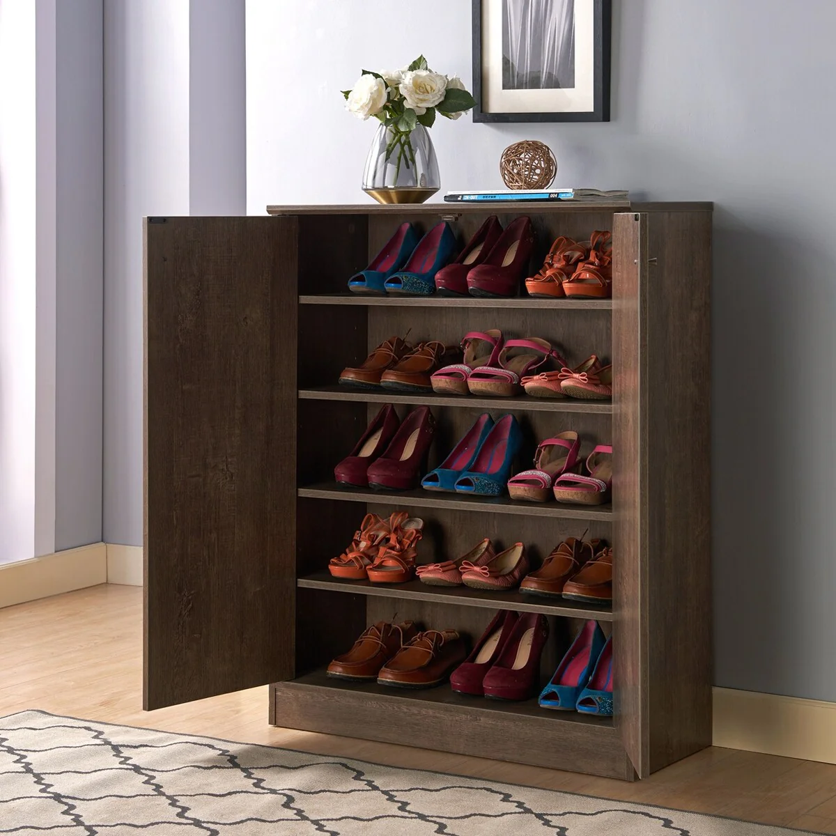 Shoe/Storage Cabinet with Two Doors Five Shelves - Dark Brown
