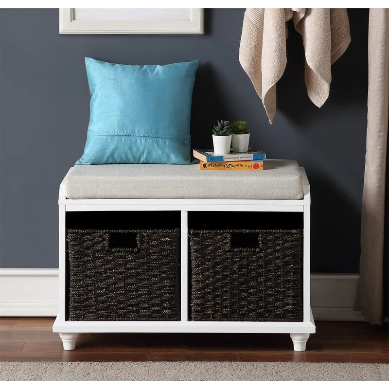 Storage Bench, Lower Shelf, Two Drawers, Light Oak Finish