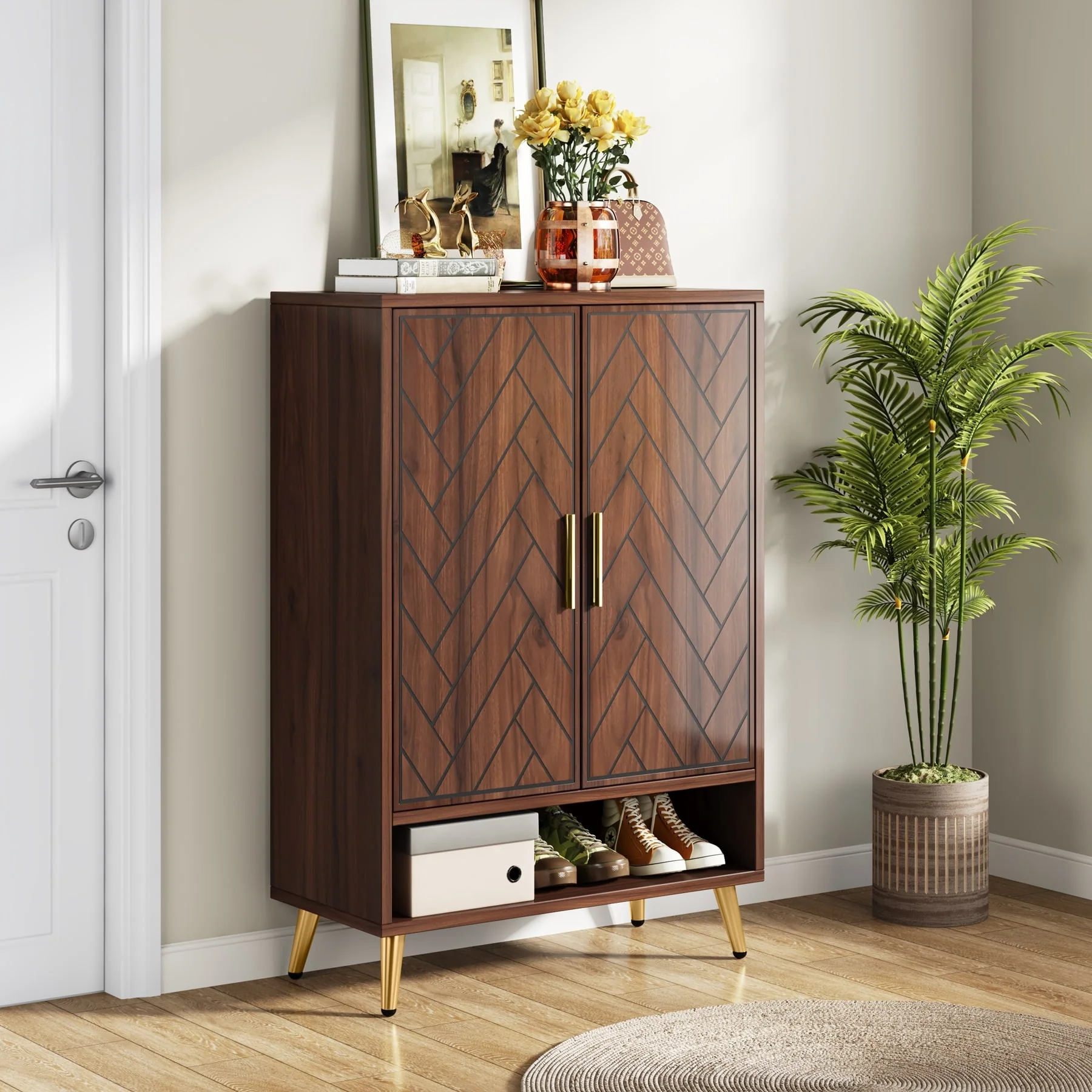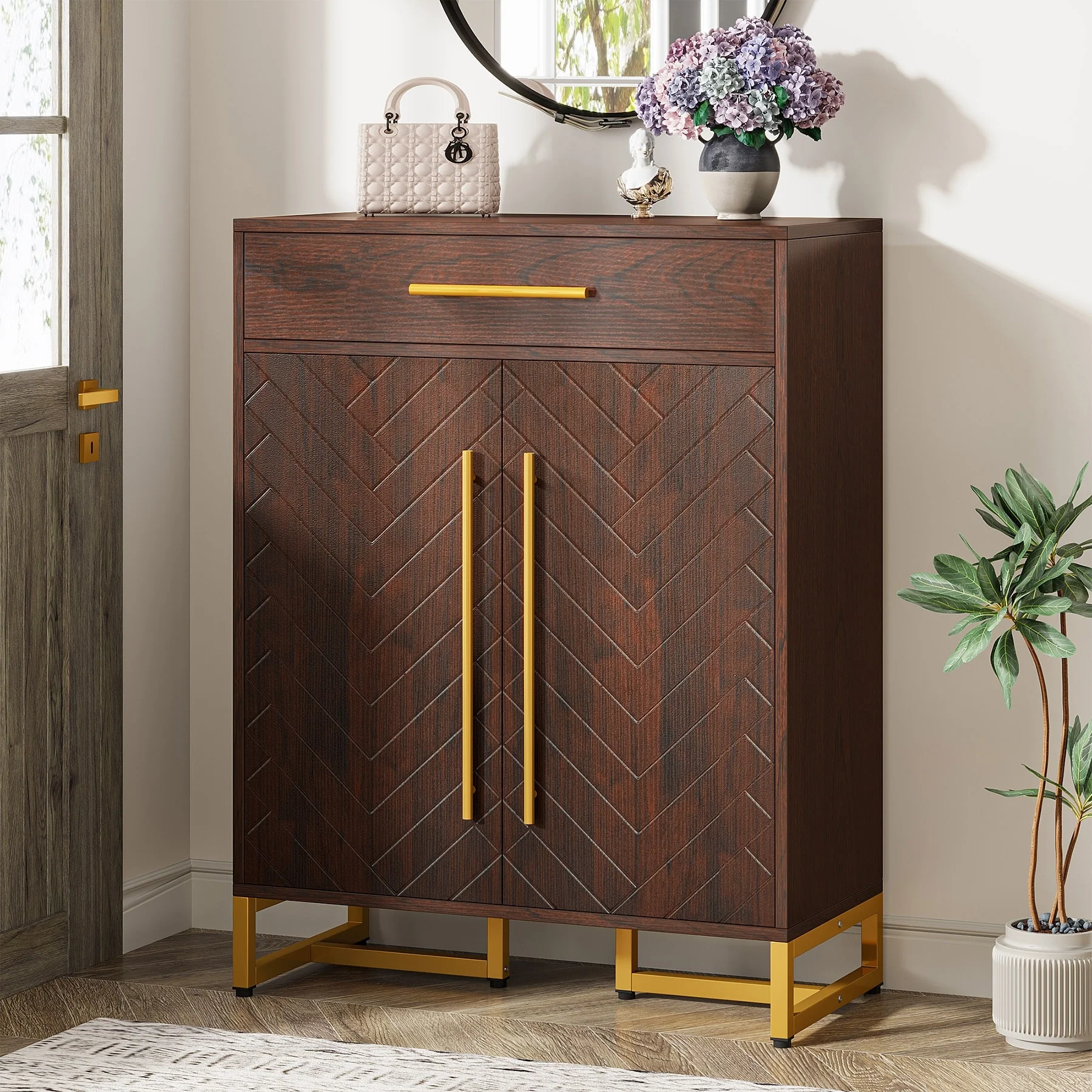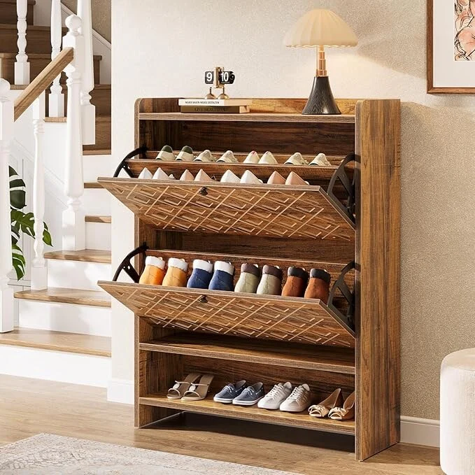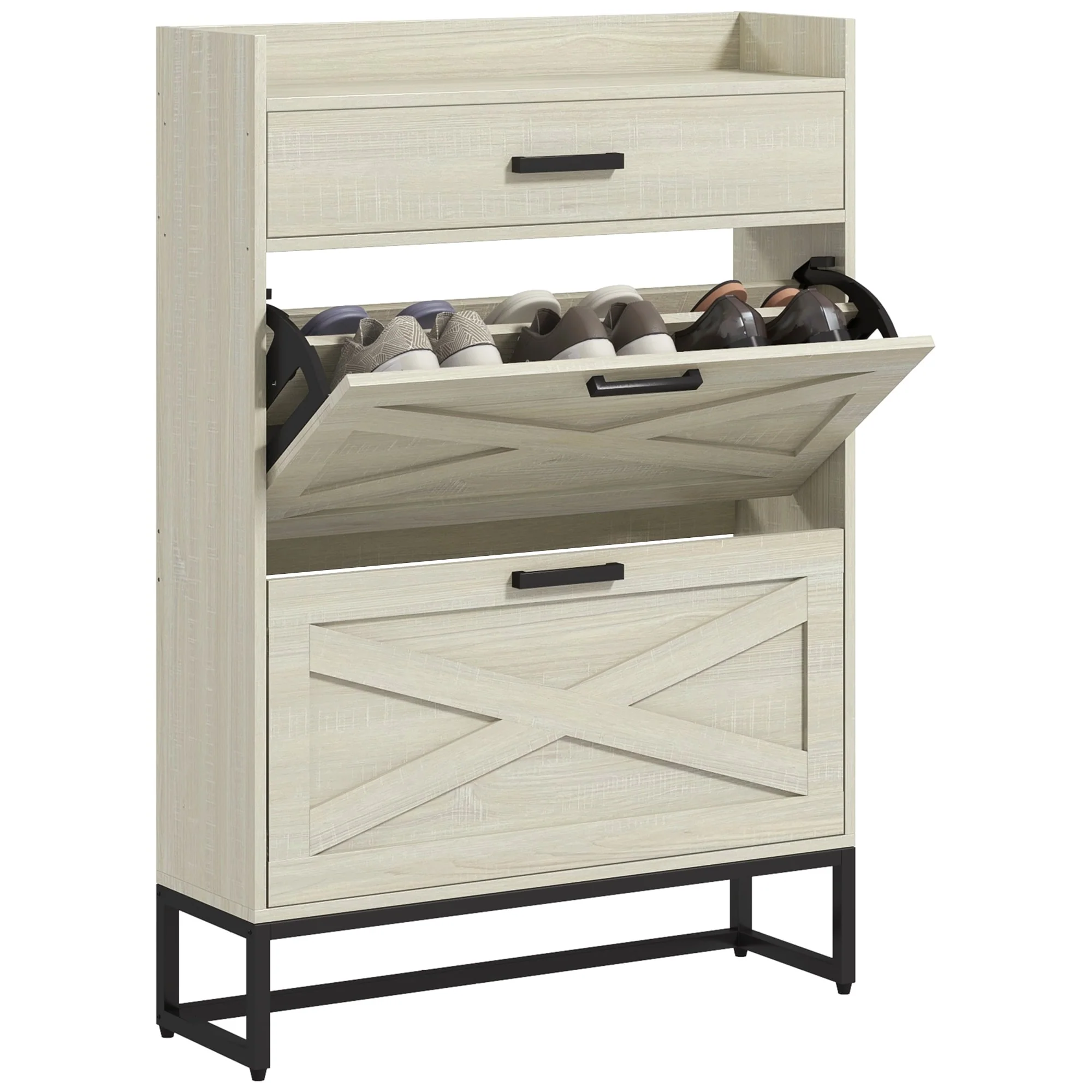 Farmhouse Shoe Storage Cabinet with 2 Flip Drawers for Entryway