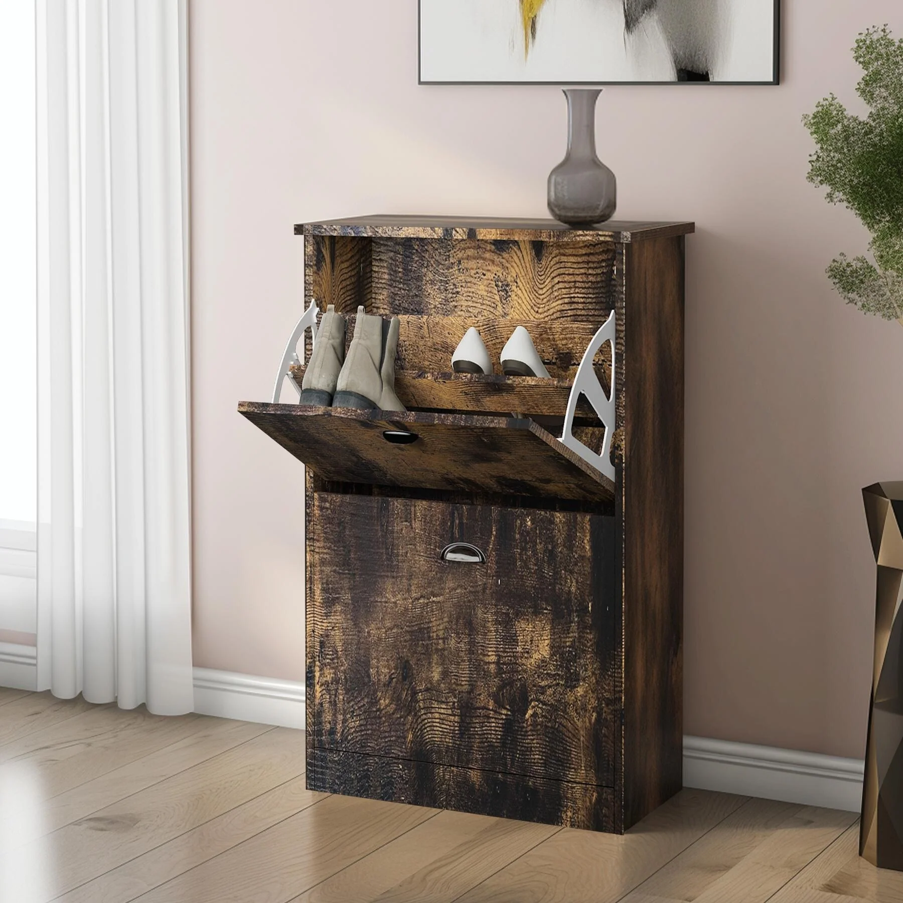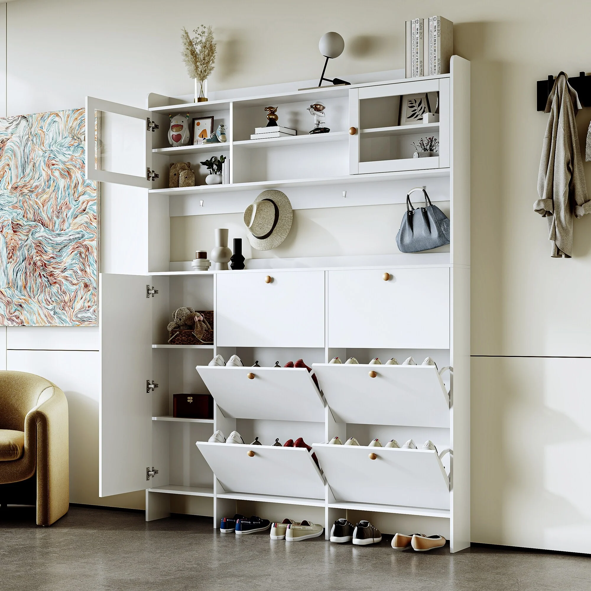 24 Pairs Shoe Storage Cabinet with Door for Entryway Living Room