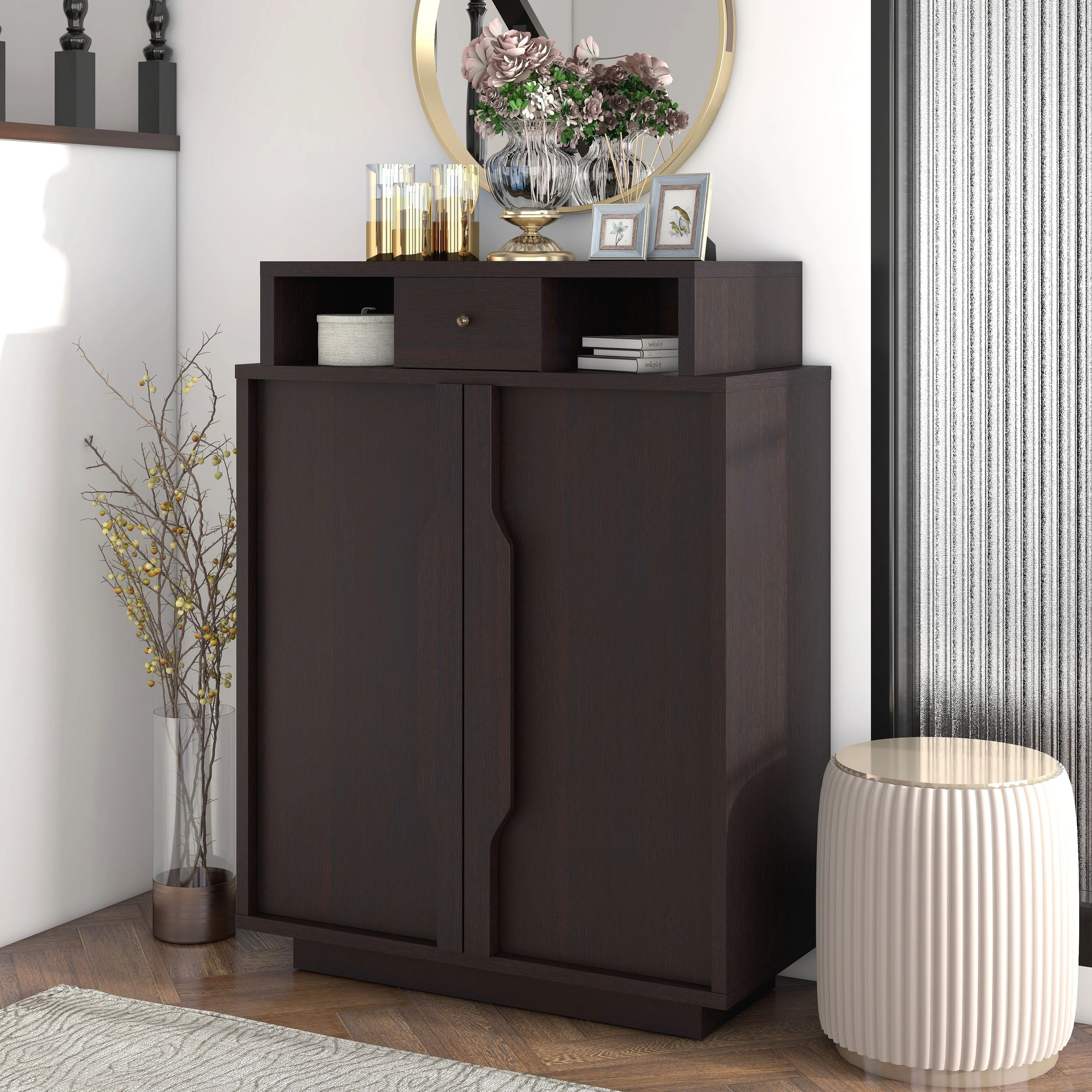 Hidden Slim Narrow Shoe Rack Cabinet with Drawers