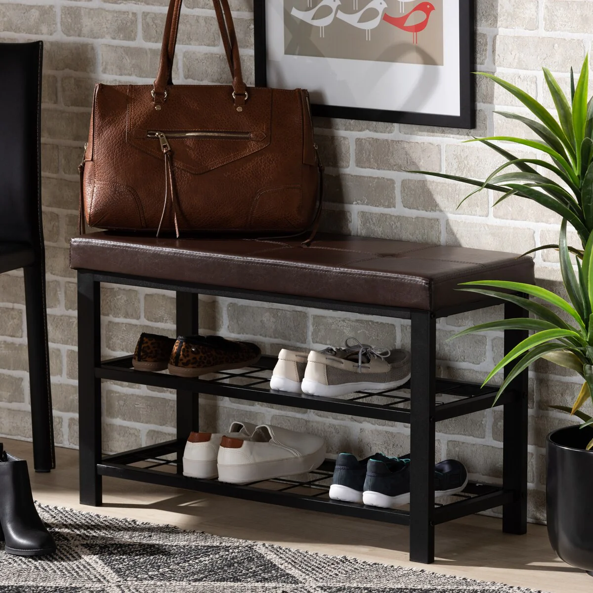 Wood Shoe Bench with Chocolate Microfiber Seat, Espresso