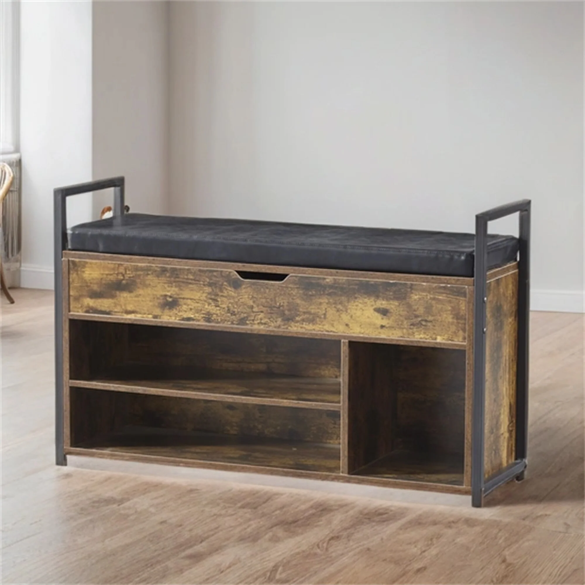 39 Wood Shoe Storage Bench with Cushion and Lift-Top Storage Box