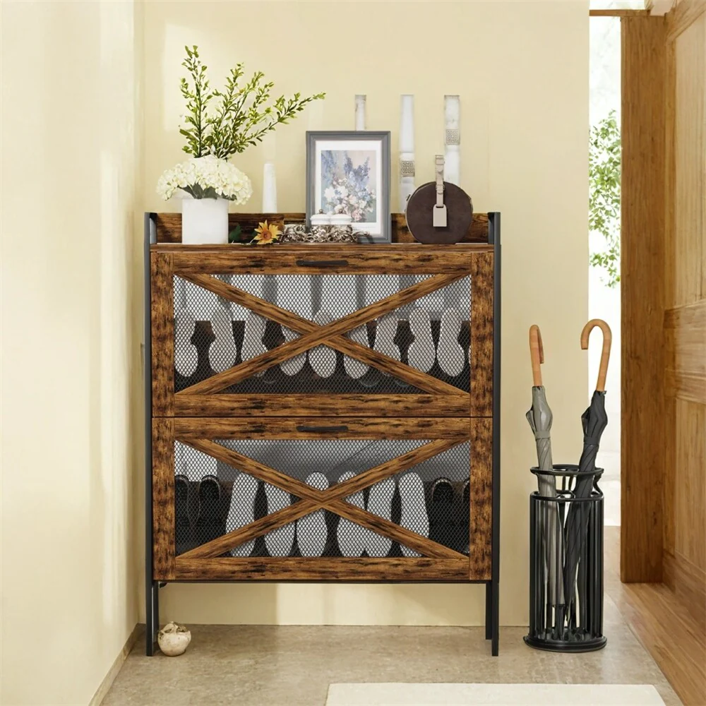 Wood Hidden Slim Narrow Shoe Cabinet with 4 Drawers for Bedroom
