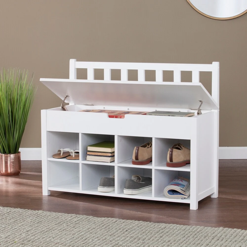 Porch & Den Tyne White Shoe Storage Cubbie Bench