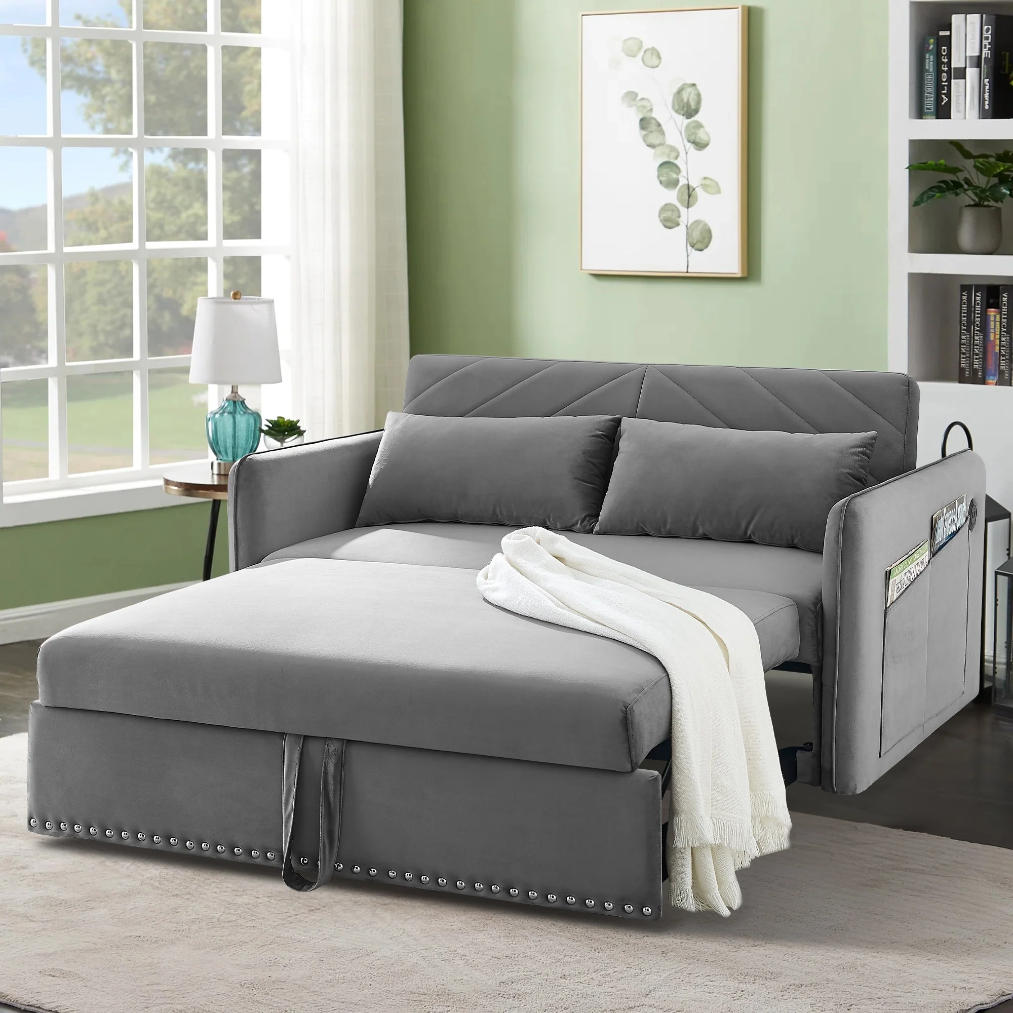 Aukfa 3 in 1 Convertible Sofa Bed Velvet Loveseat Sleeper