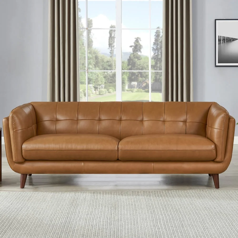 Rovan Mid-Century Modern Luxury Couch in Cognac Leather