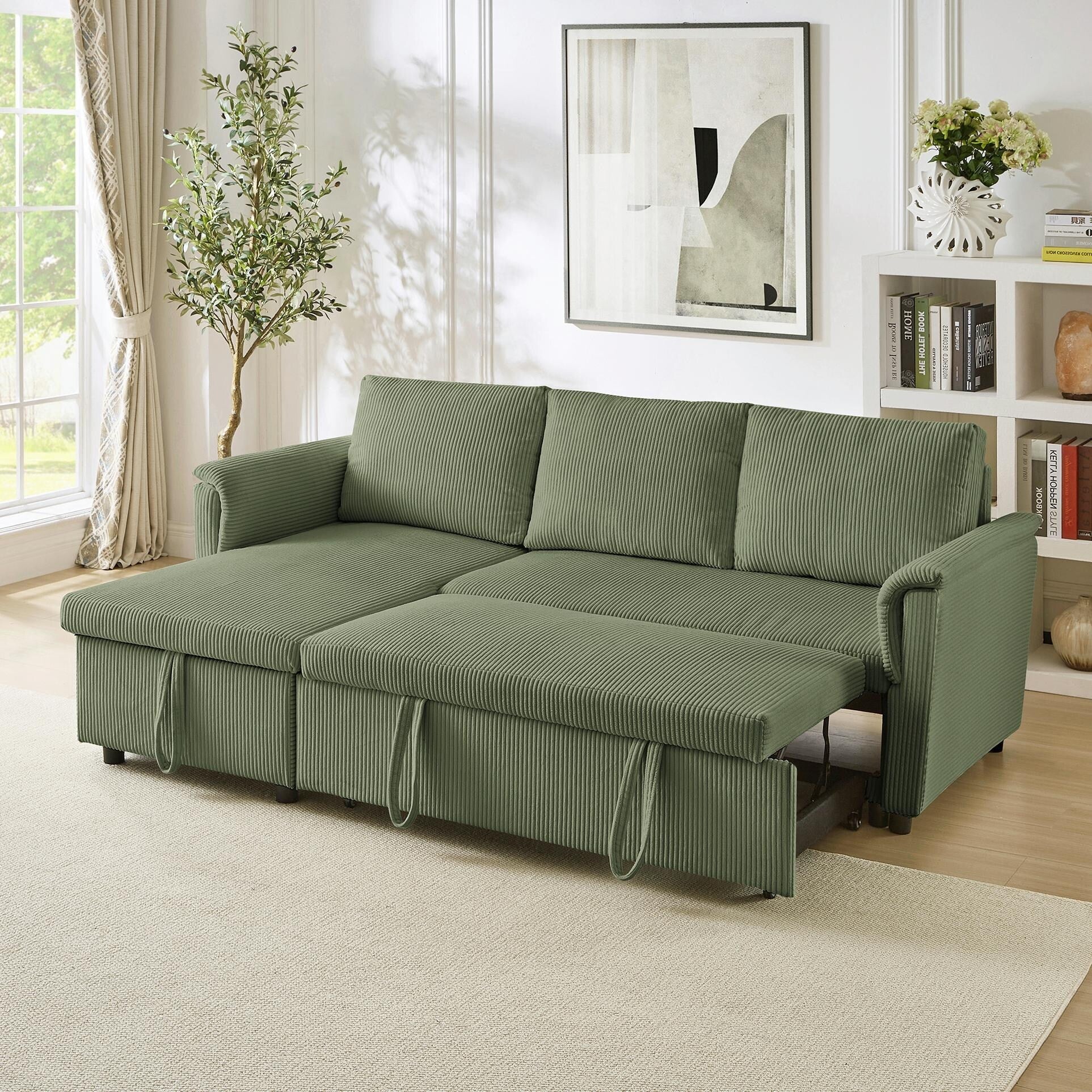 Corduroy Upholstered 3 Seater Sofa Bed