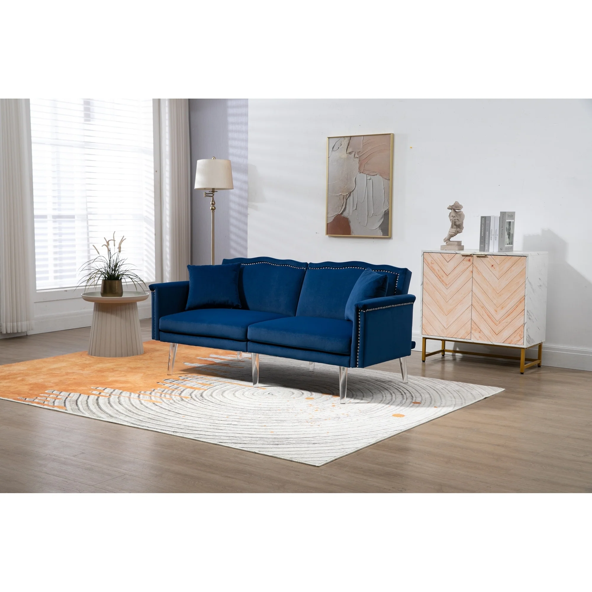 61 Small Beige Loveseat Sofa with 2 Pillows and Cup Holder