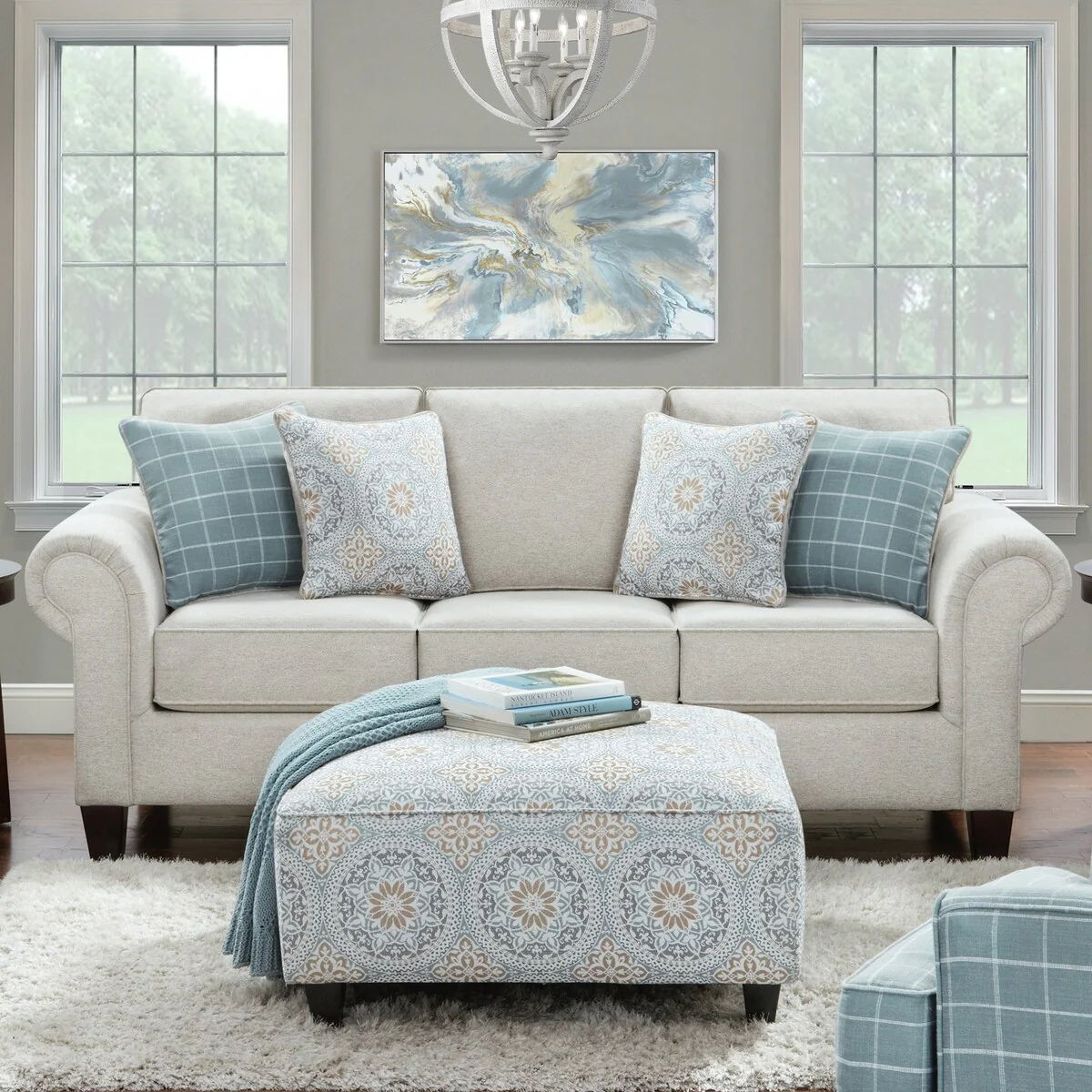 111 Chenille Curved 3-Seater Sofa with Removable Patterned Pillows
