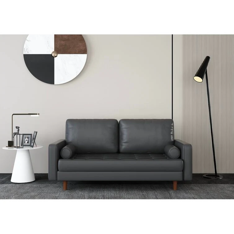 Classic Living Room Nails Sofa Navy Blue Faux Leather
