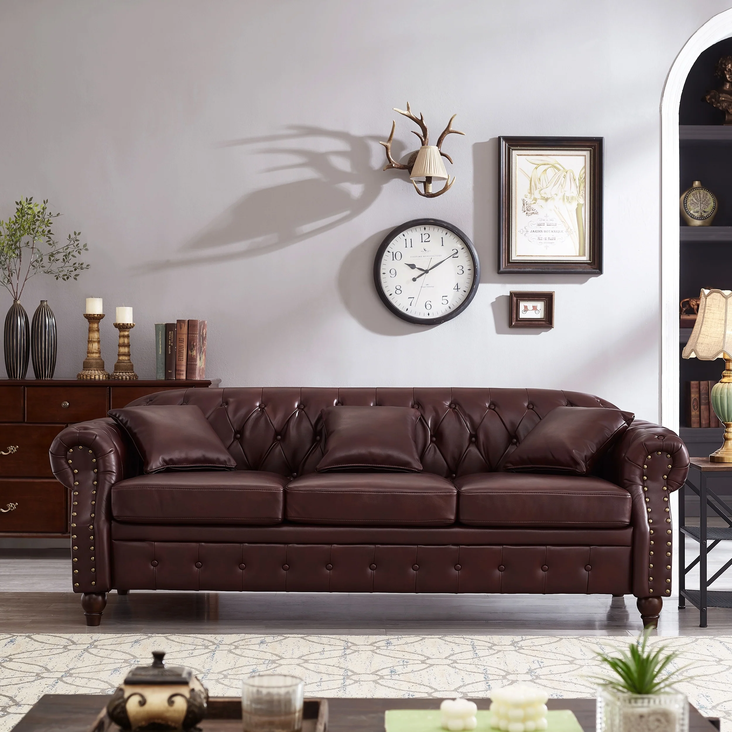 Mirod Mid-Century Modern PU Leather 3-Seat Sofa