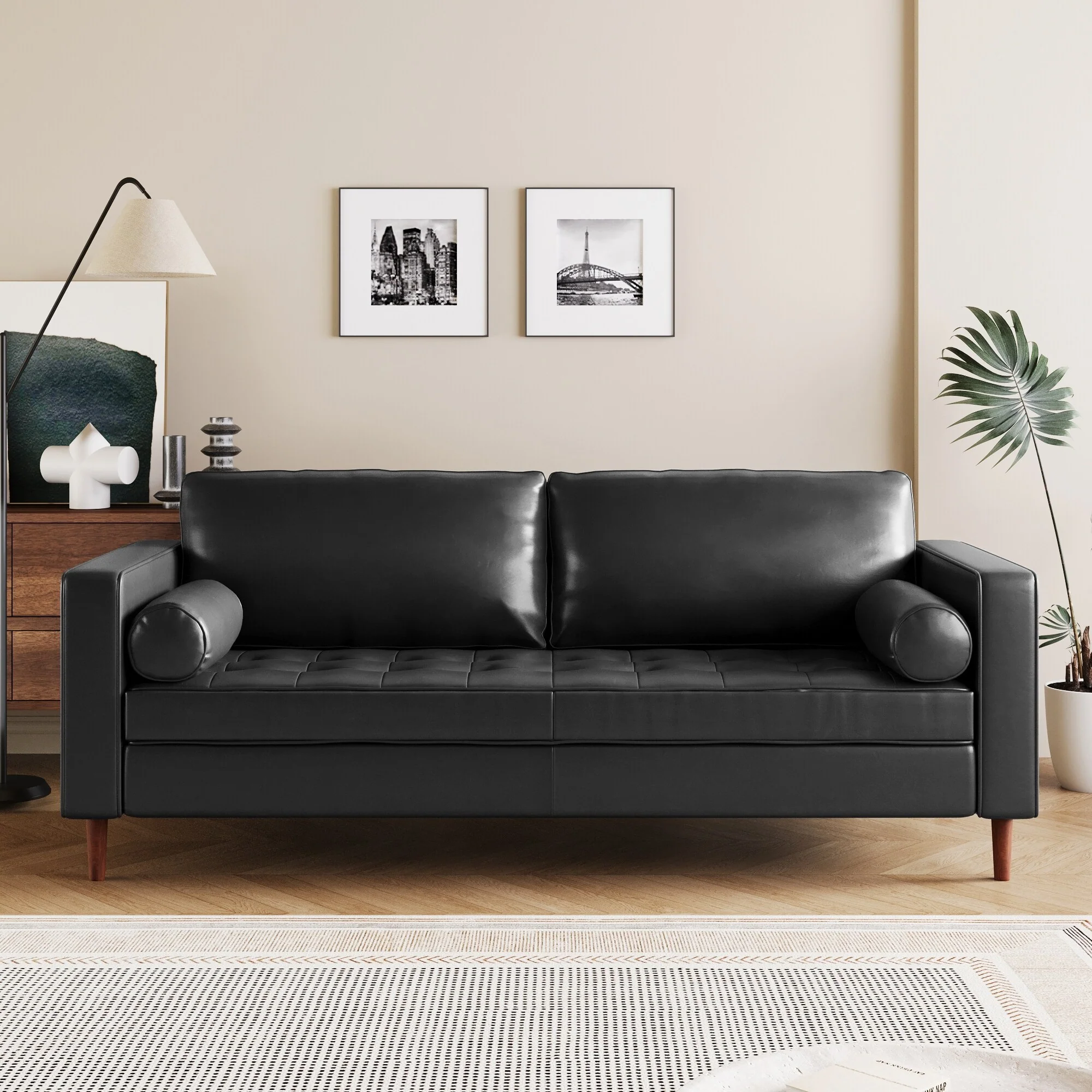 Modern Chenille Sofa, Solid Wood Frame with High Elasticity Cushion