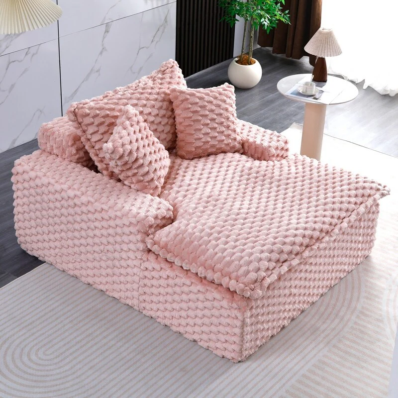 Pink Corduroy Cloud Sofa with Pillows