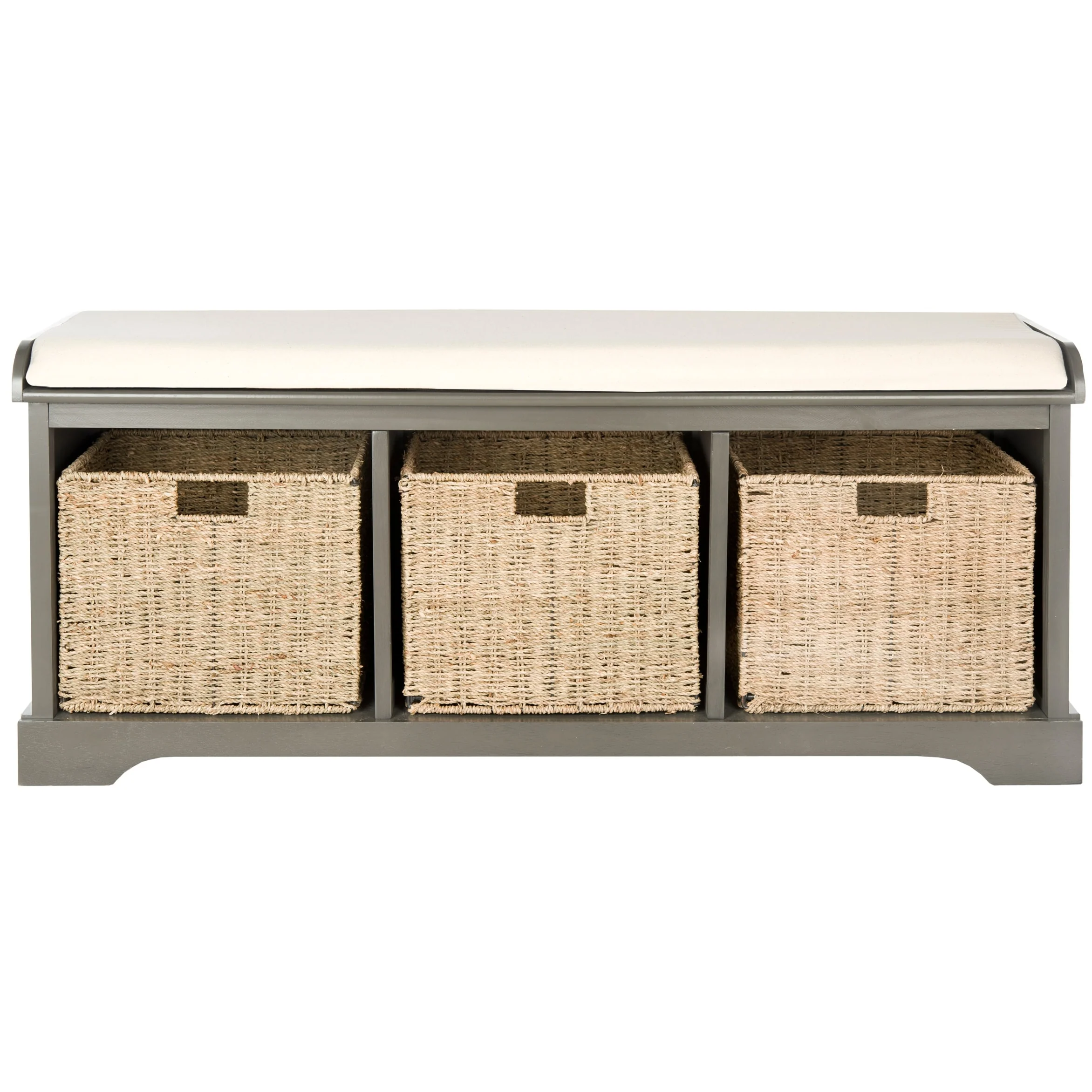 happimess Rustic 30 2 Drawer Wicker Storage Bench, Gray