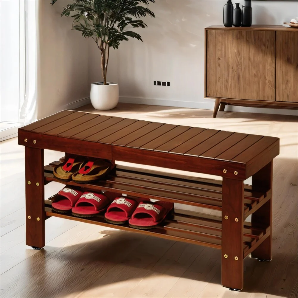 Wood Shoe Bench with Shelf and Legs