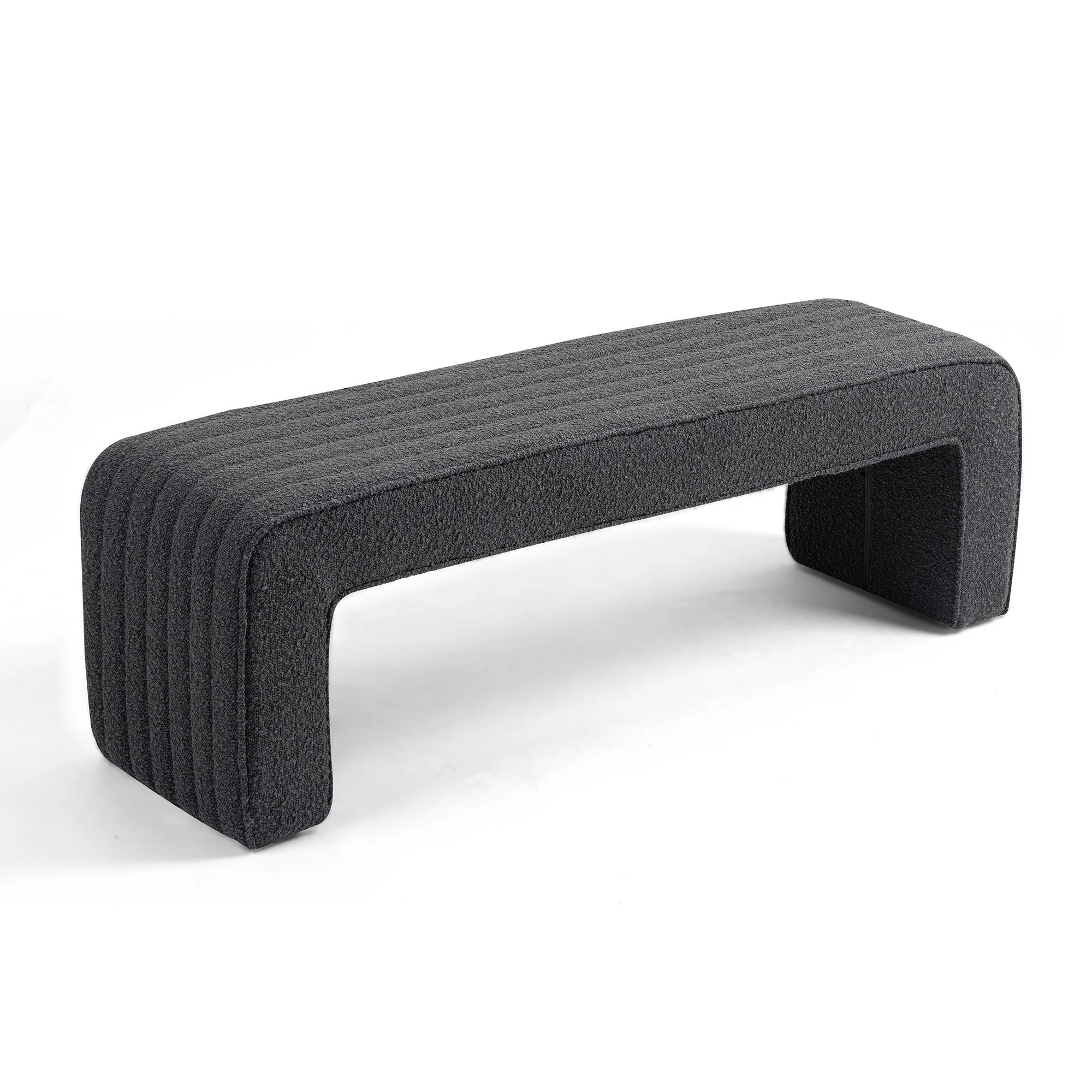 Benicia Gray Boucle Upholstered Fabric Tufted Bench