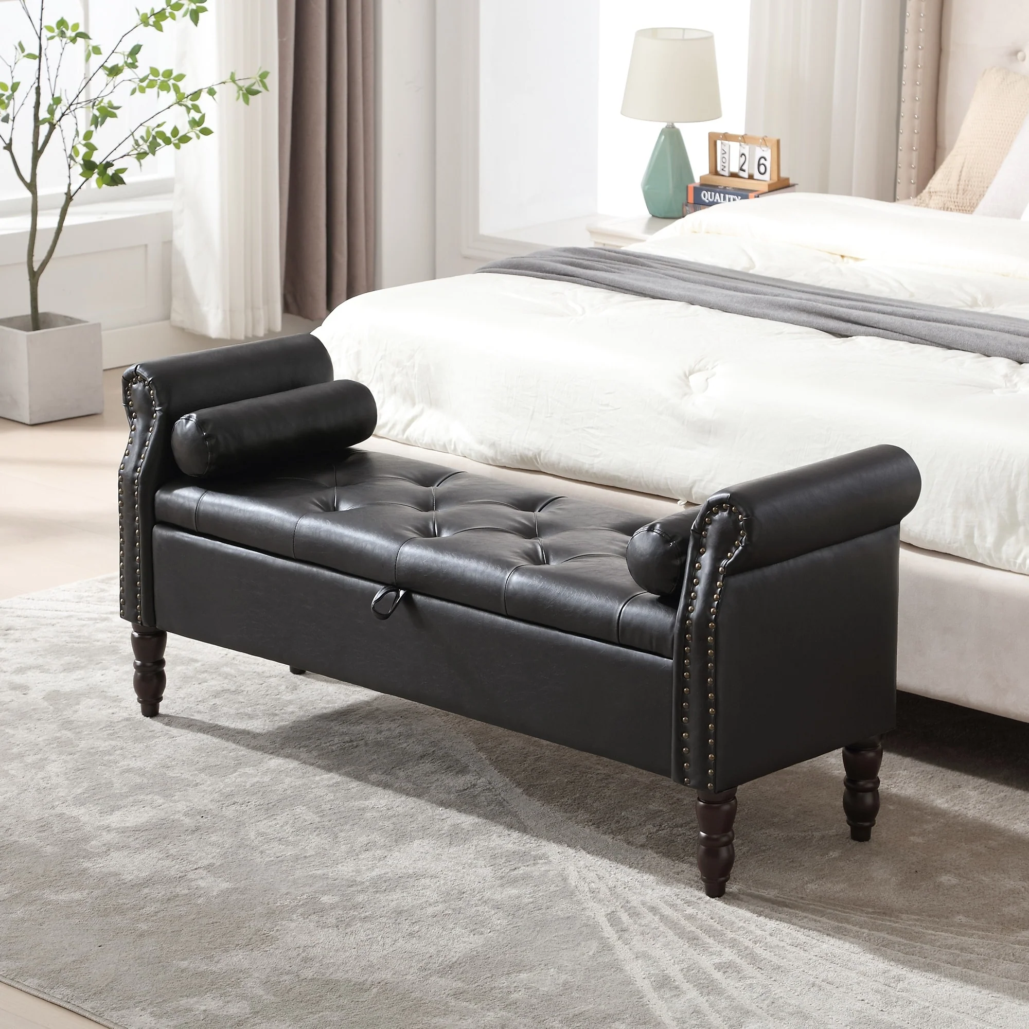 HOMYKA Storage Ottoman Bench with Rolled Arm