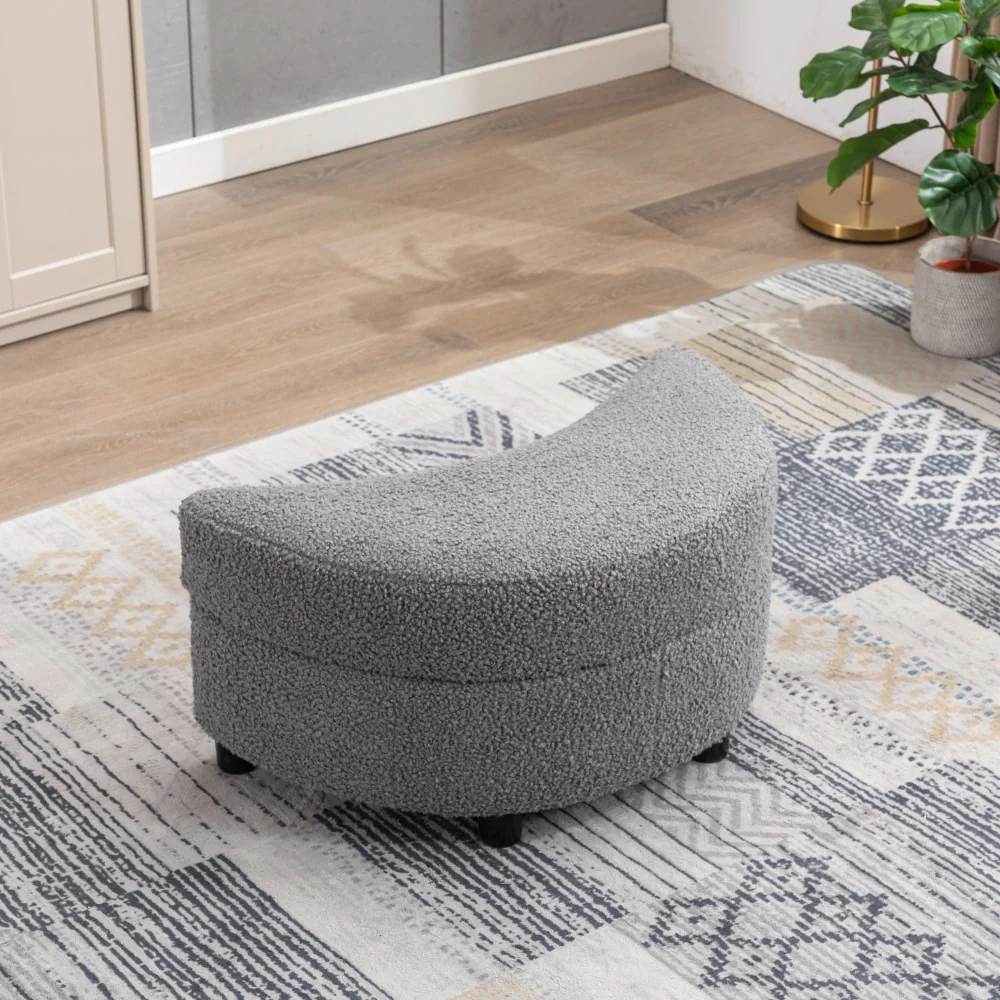 32.7 W Upholstered Half Crescent Moon Dark Gray Storage Ottoman