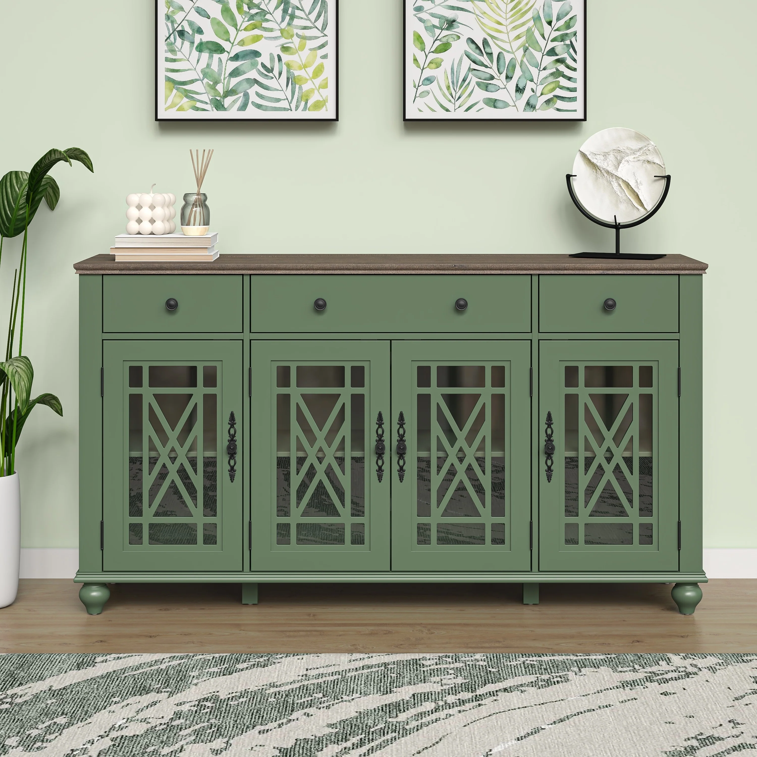 Sideboard Buffet Cabinet with 4 Doors and Shelves and Silver Handles