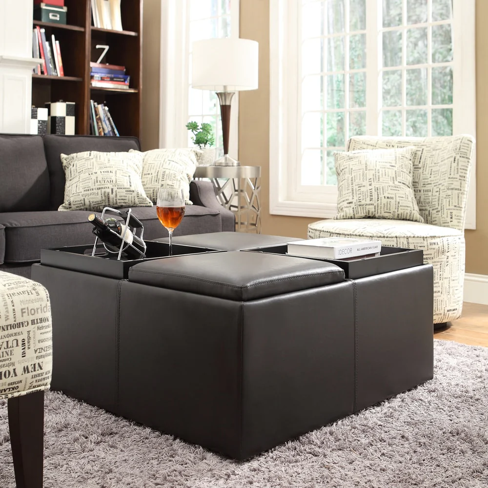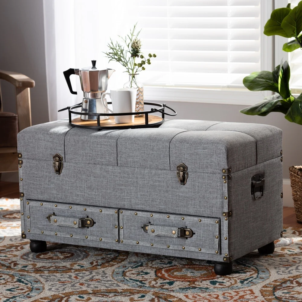 Flynn Modern Transitional Grey Upholstered Storage Trunk Ottoman
