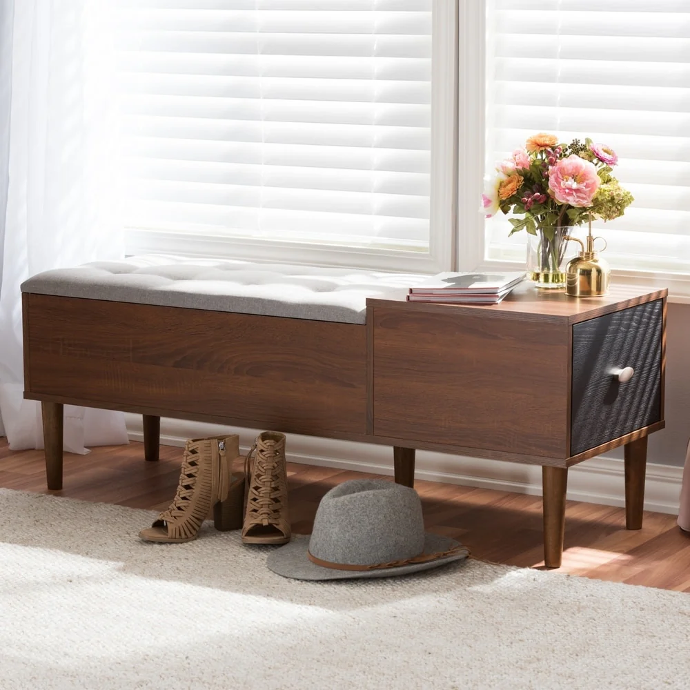 Mid-century 1-Drawer Shoe Storage Bench by Baxton Studio