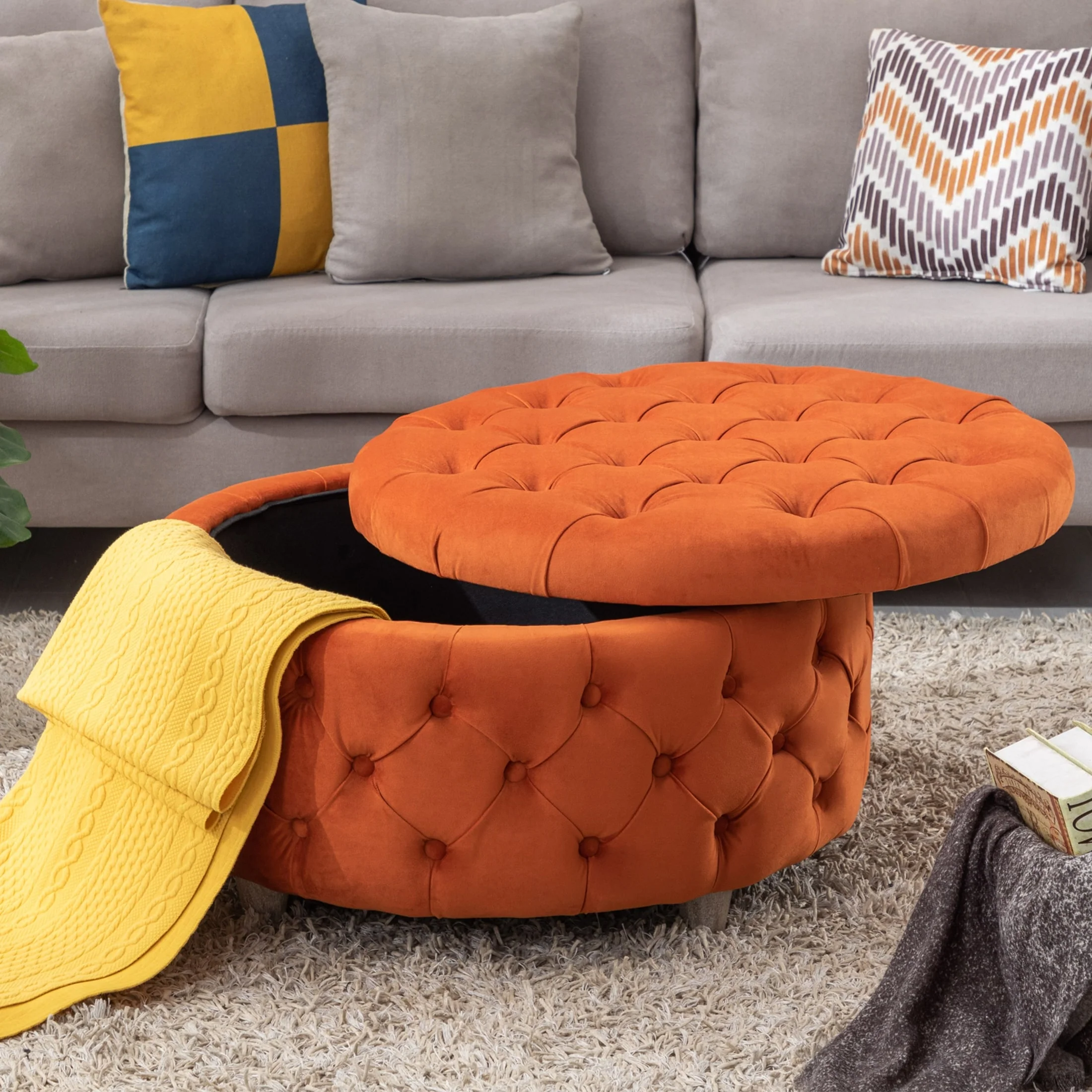 29.5 Wide Velvet Tufted Round Ottoman With Storage