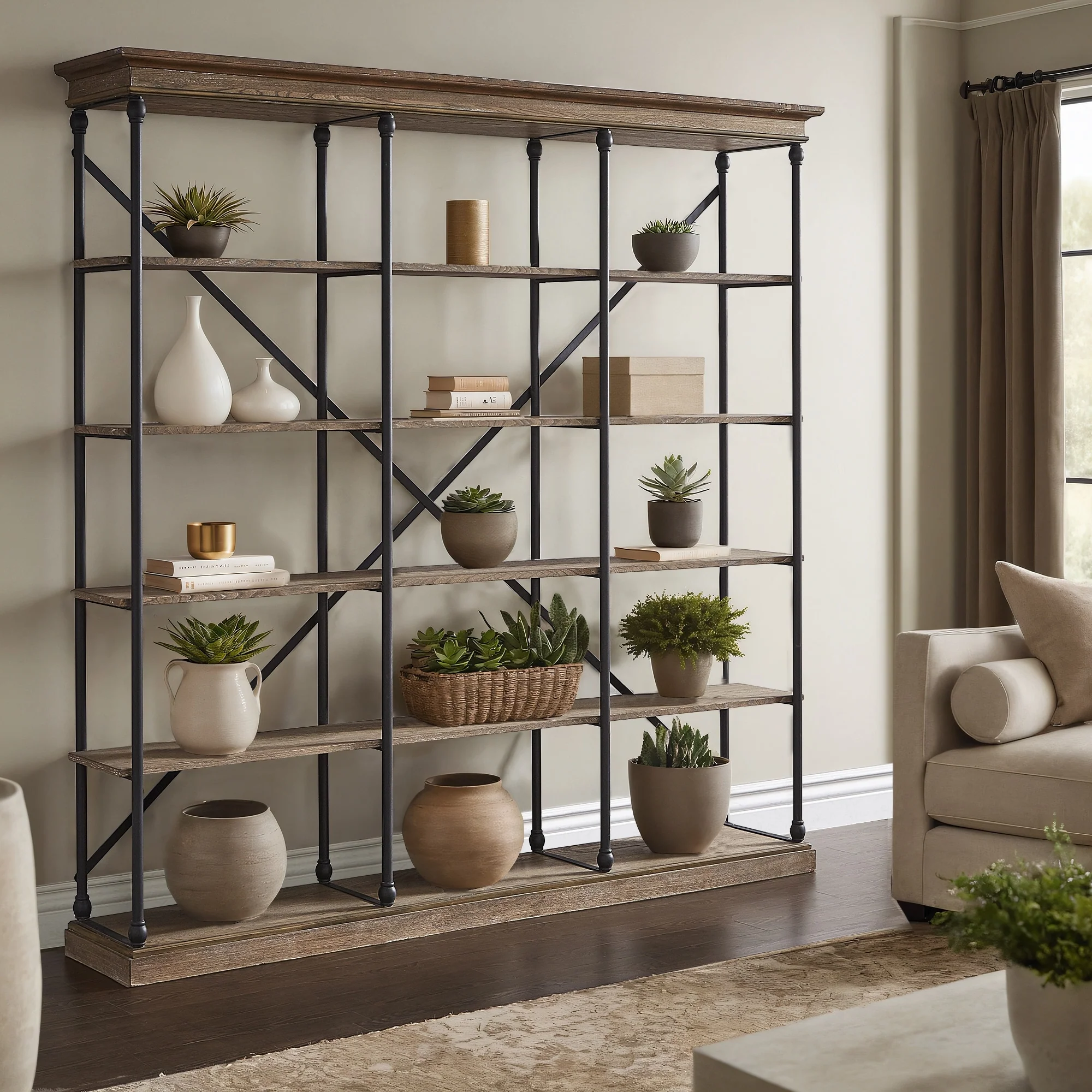 72 Tall Farmhouse Bookcase, Rustic Wood Bookshlef for Home Office