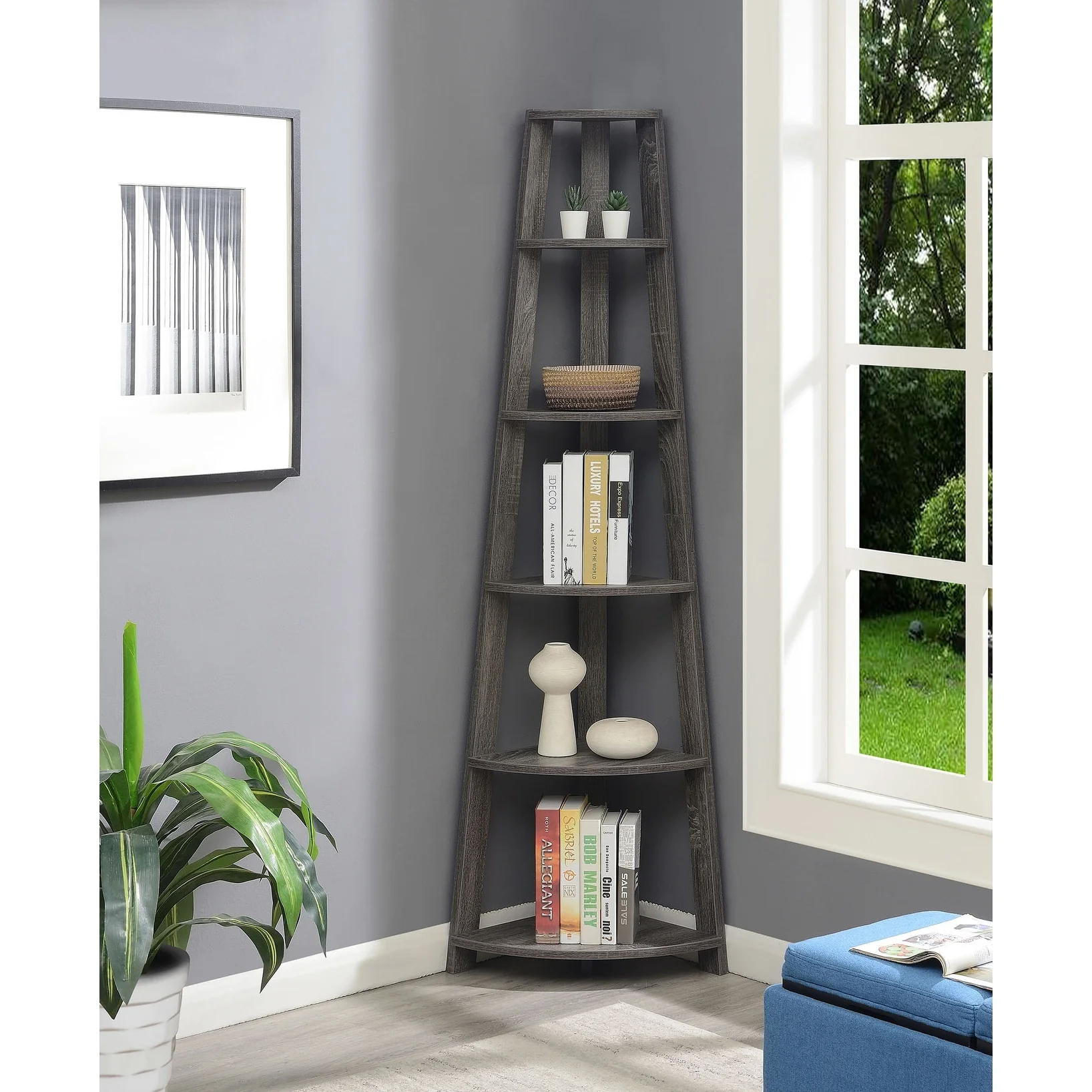 Convenience Concepts Newport 5 Tier Corner Bookshelf