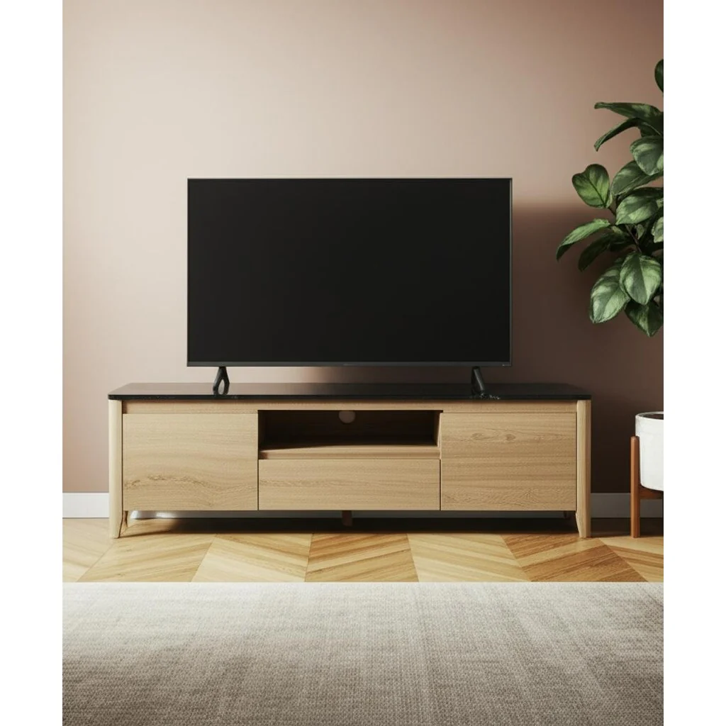 Living Room TV Stand with Storage and Two Drawers