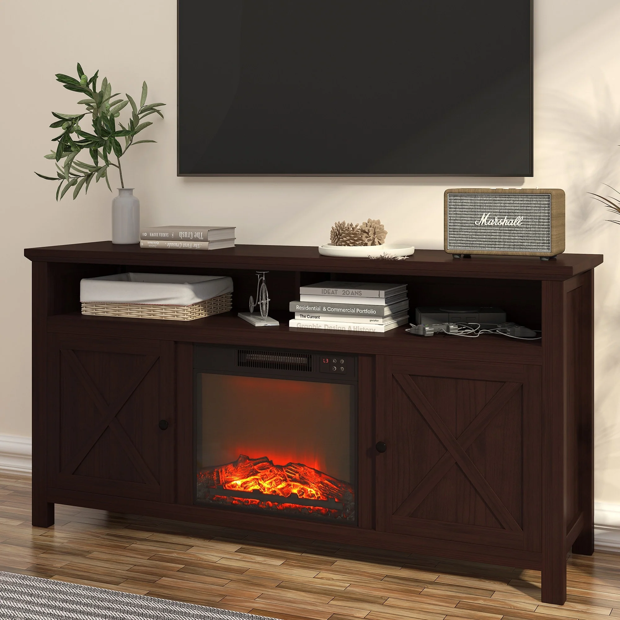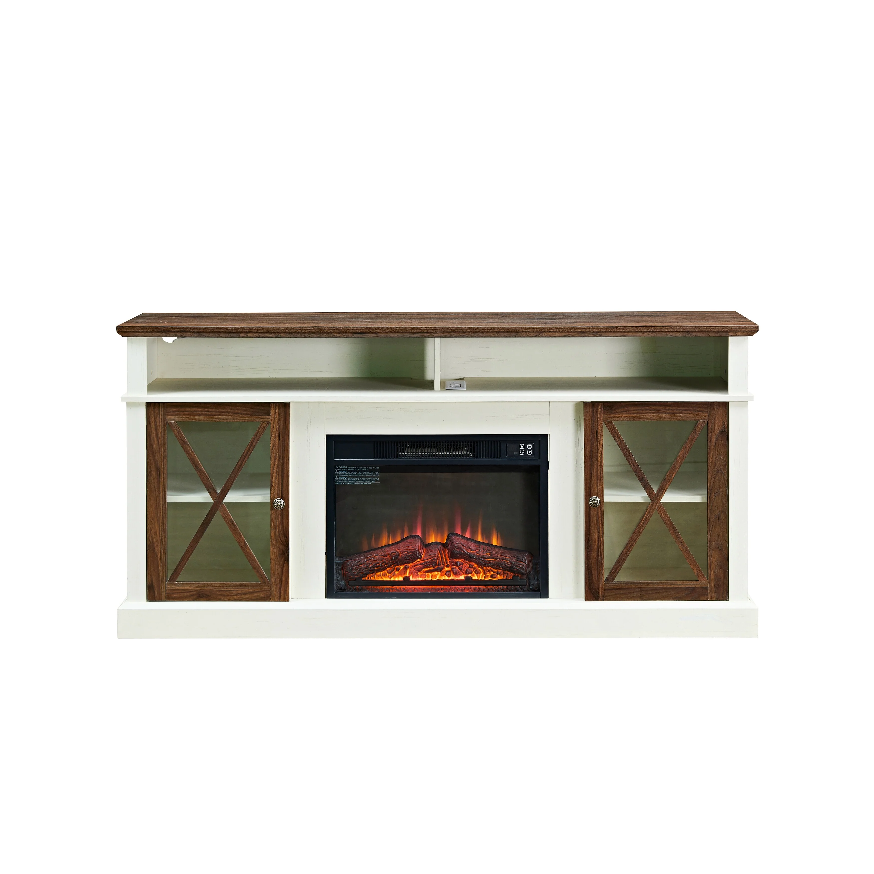 Clihome 58 Wood Fireplace TV Stand with 18 Electric Fireplace