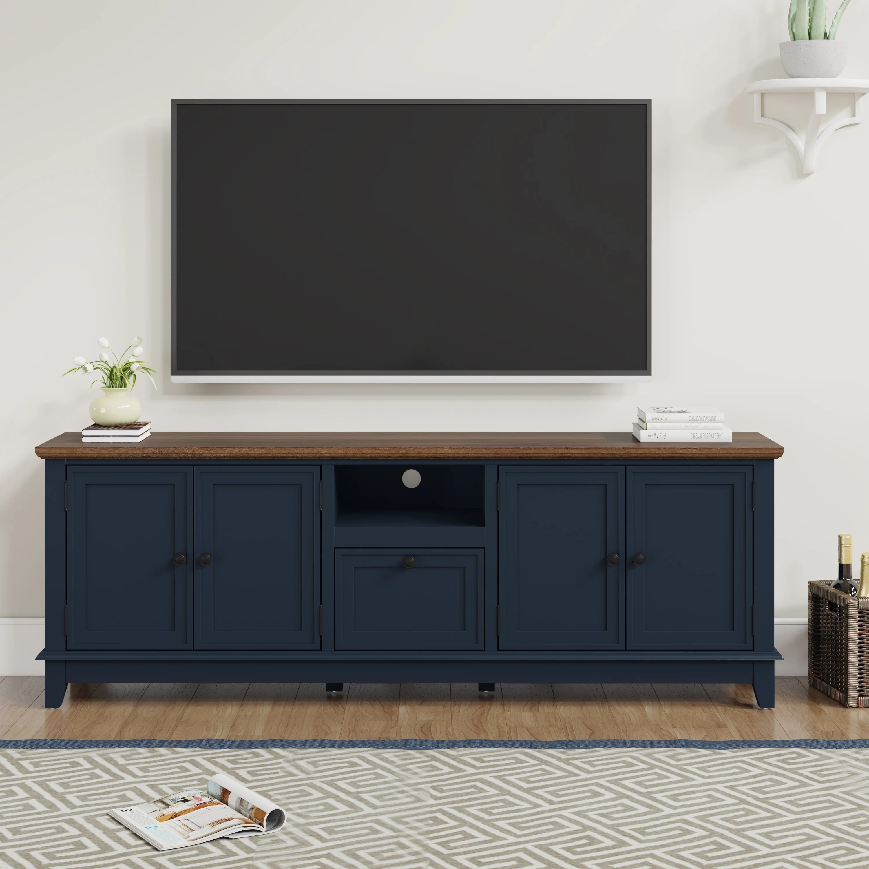 70-Inch Mid-Century Modern Media Console with Ample Storage