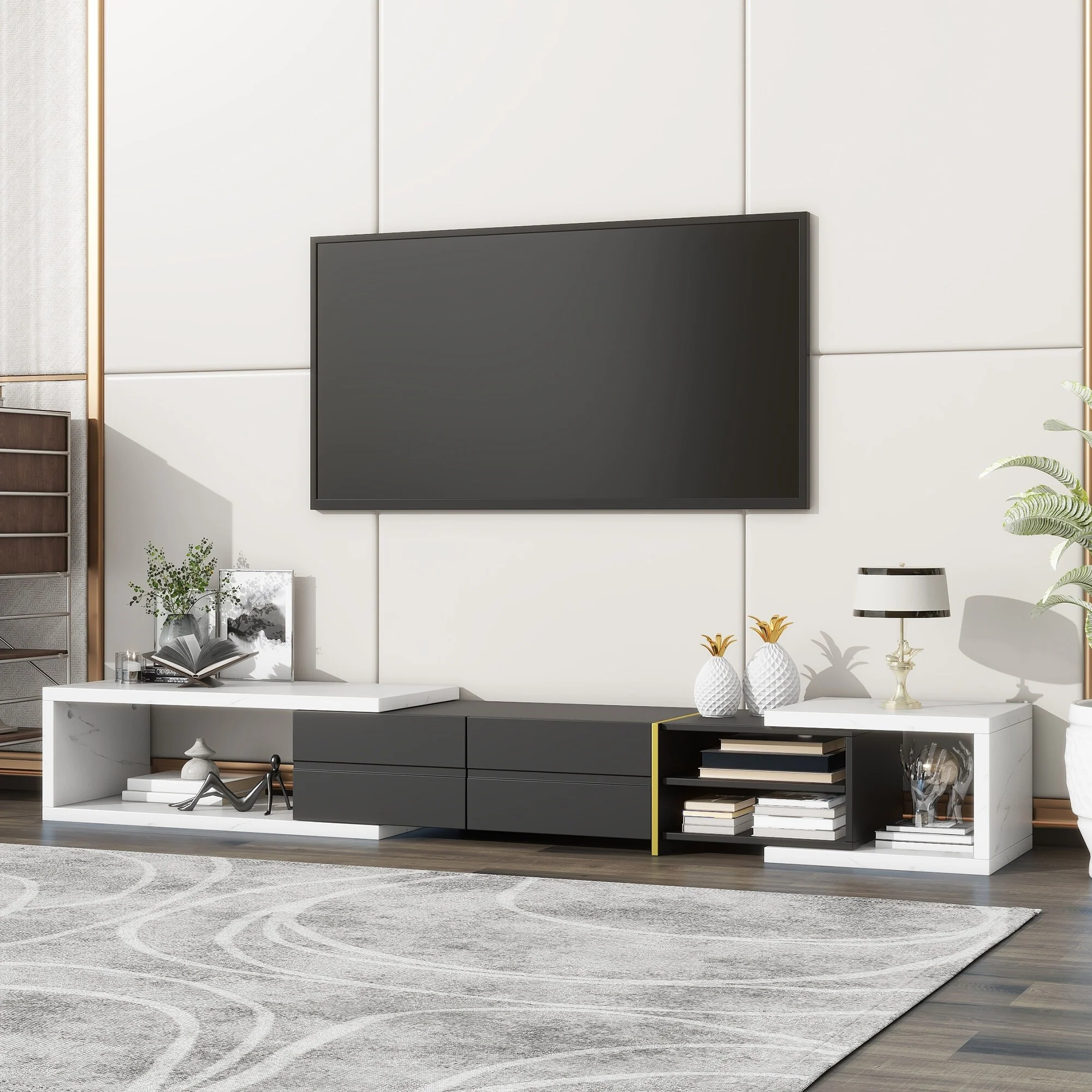 Retro 78.8 TV Stand with Six Metal Legs and Ample Storage