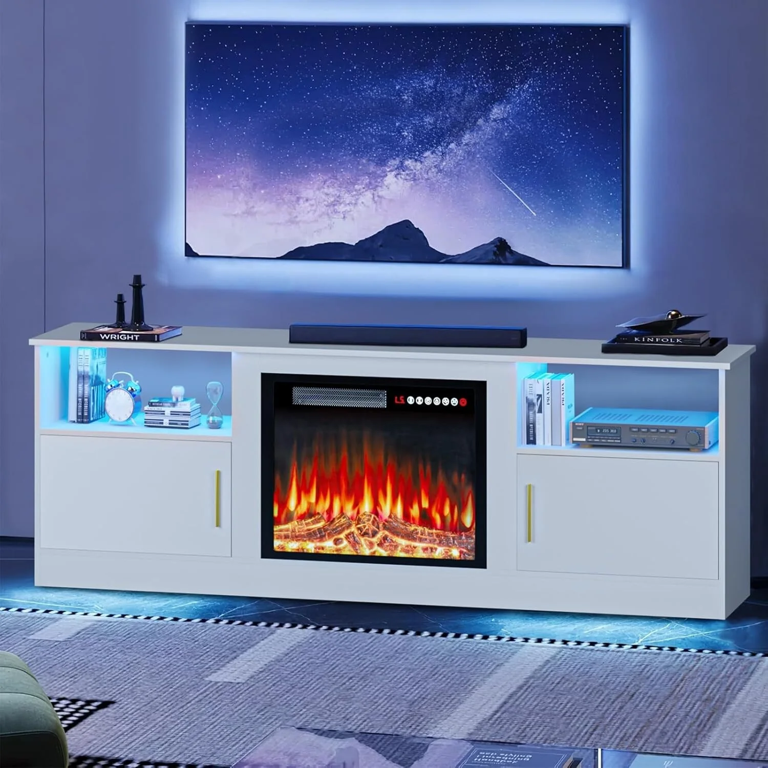 Modern TV Stand with Electric Fireplace and LED Lighting