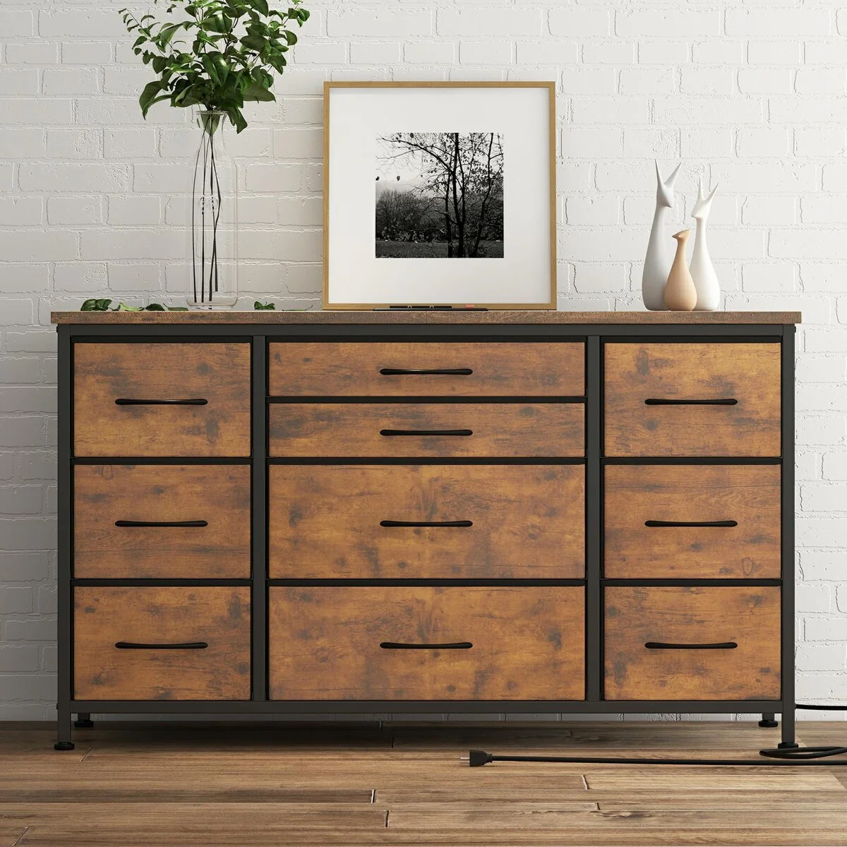 TV Stand with Power Outlet, 10 Drawers for 55'' TV - n/a