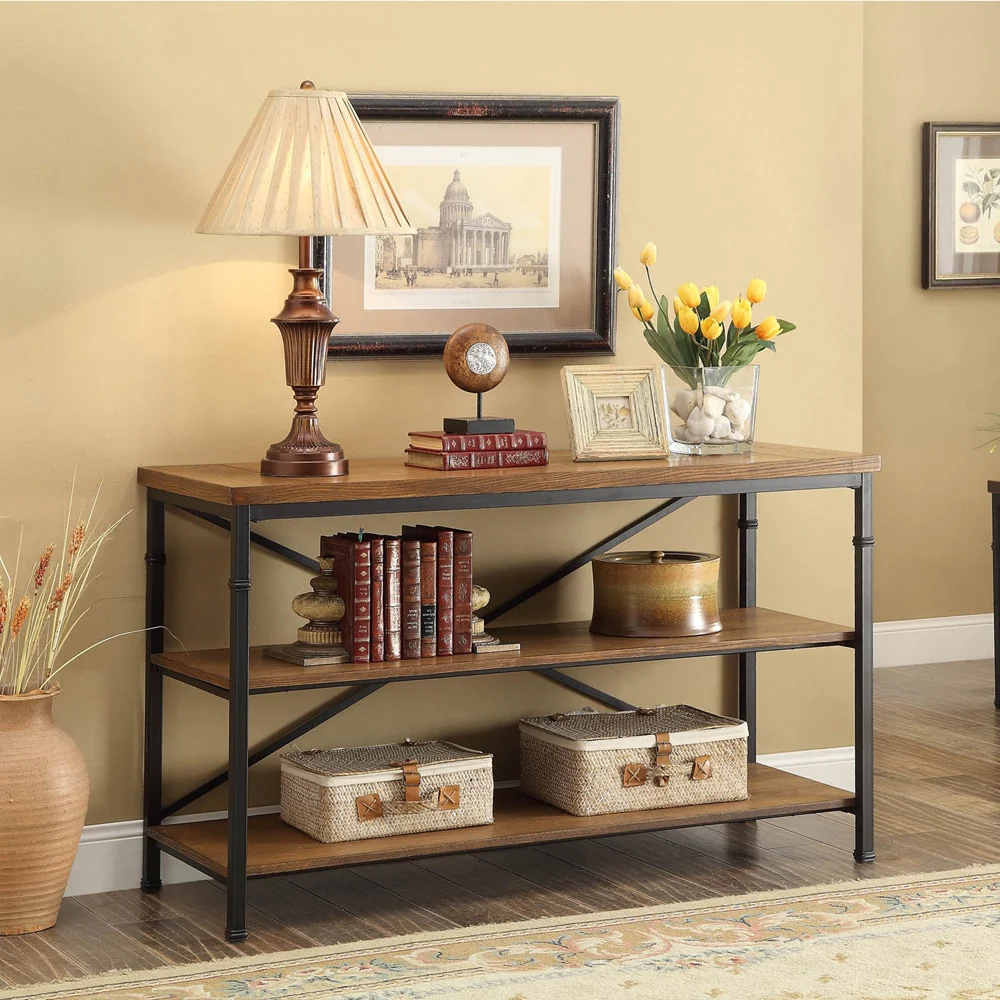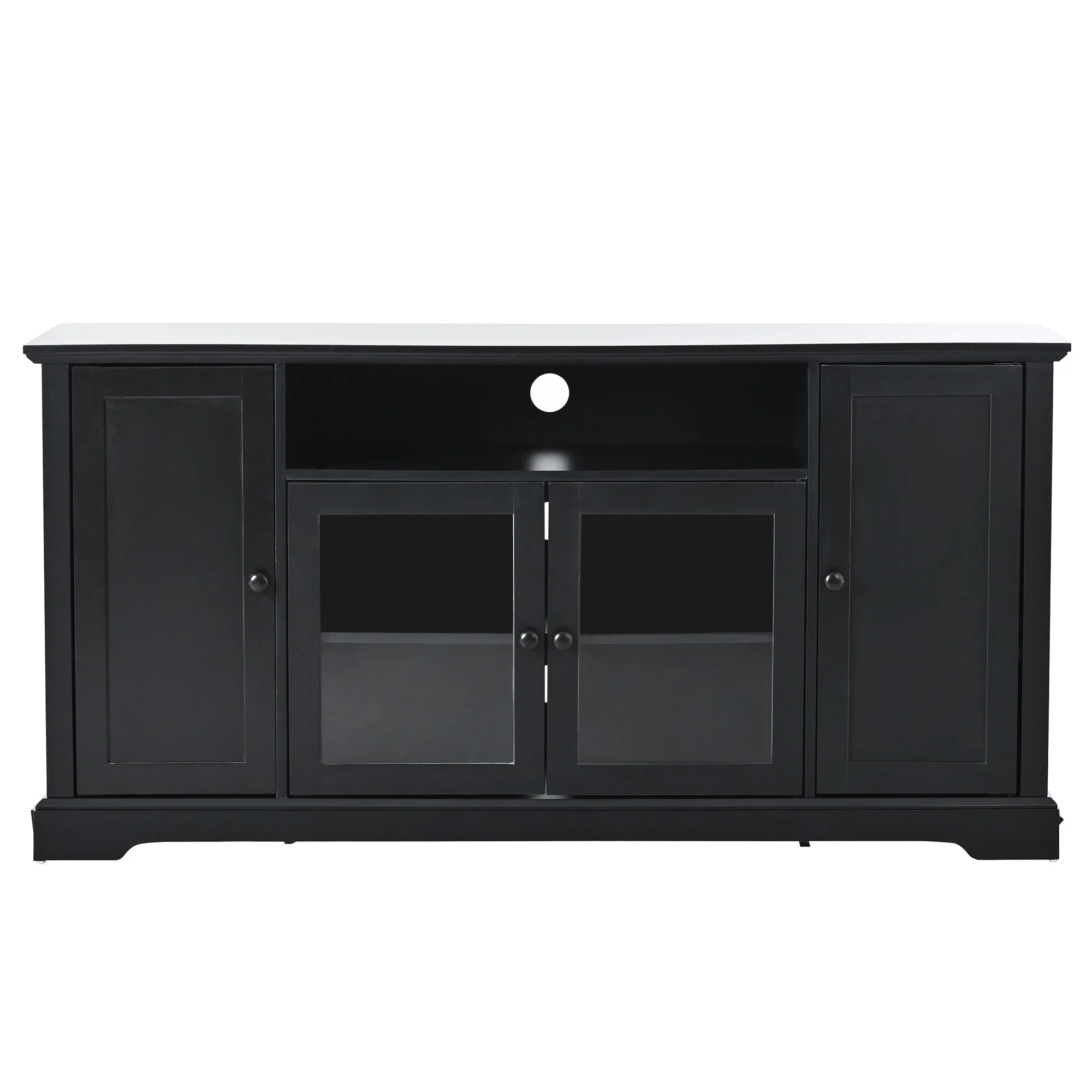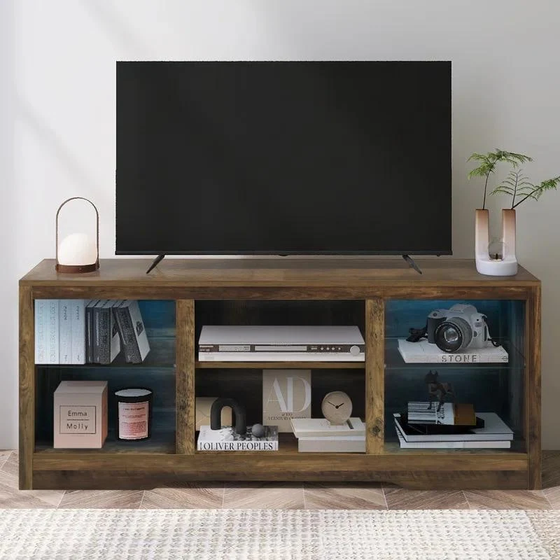 TV Stand With Open Storage&Glass Shelves