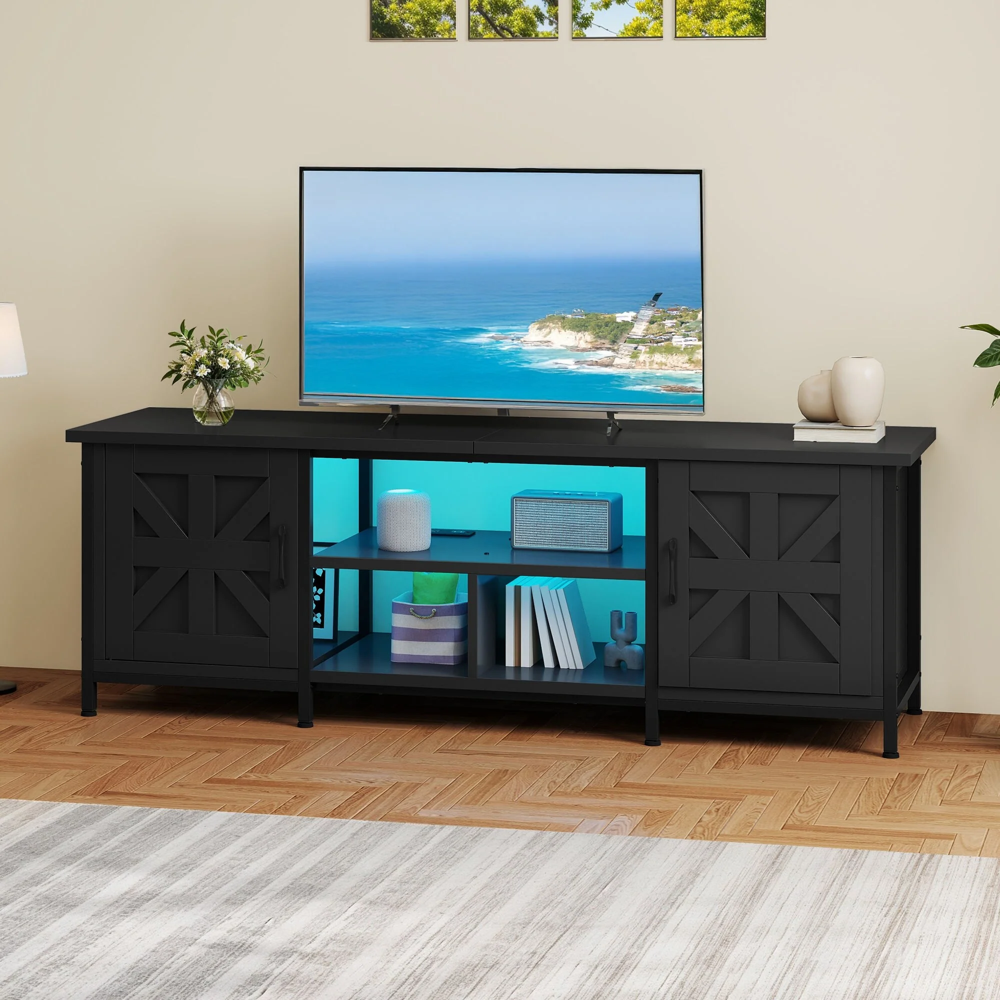 Sliding Barn TV Stand Entertainment Center for 75 TV