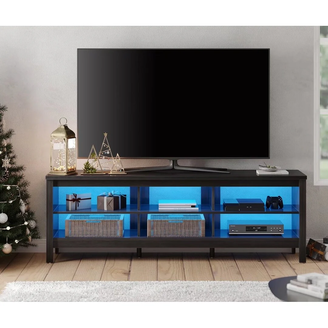 Black 71 TV Console with RGB Lights & Storage for TVs Up to 70