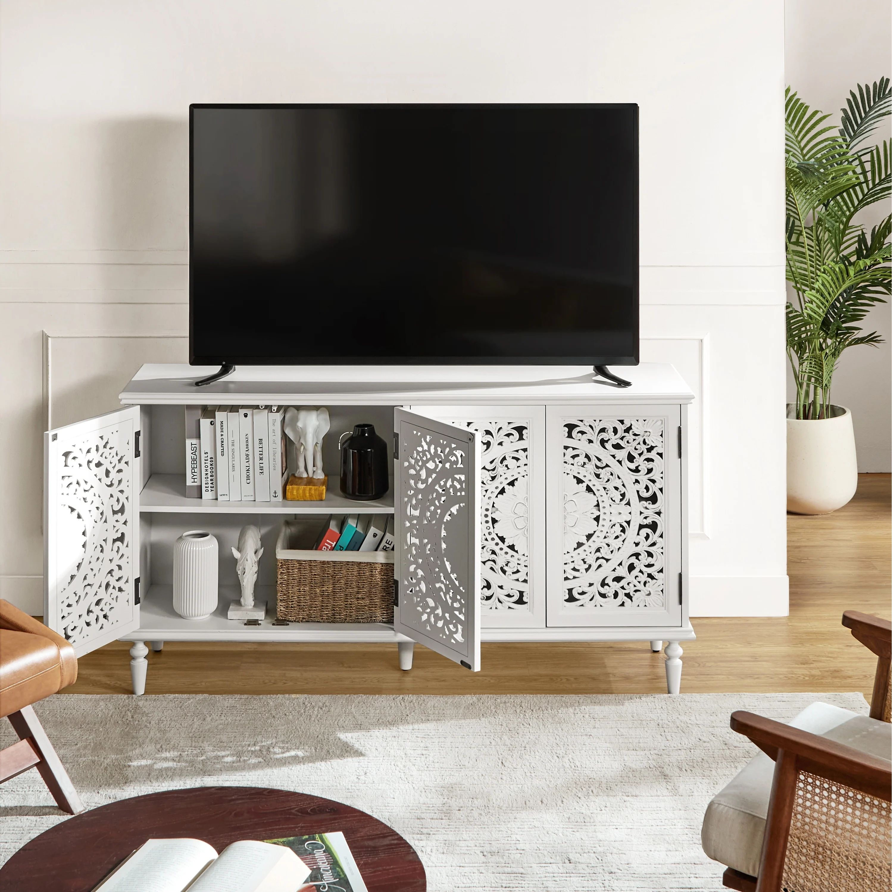Rattan TV Stand for TVs up to 85'',Farmhouse Media Console
