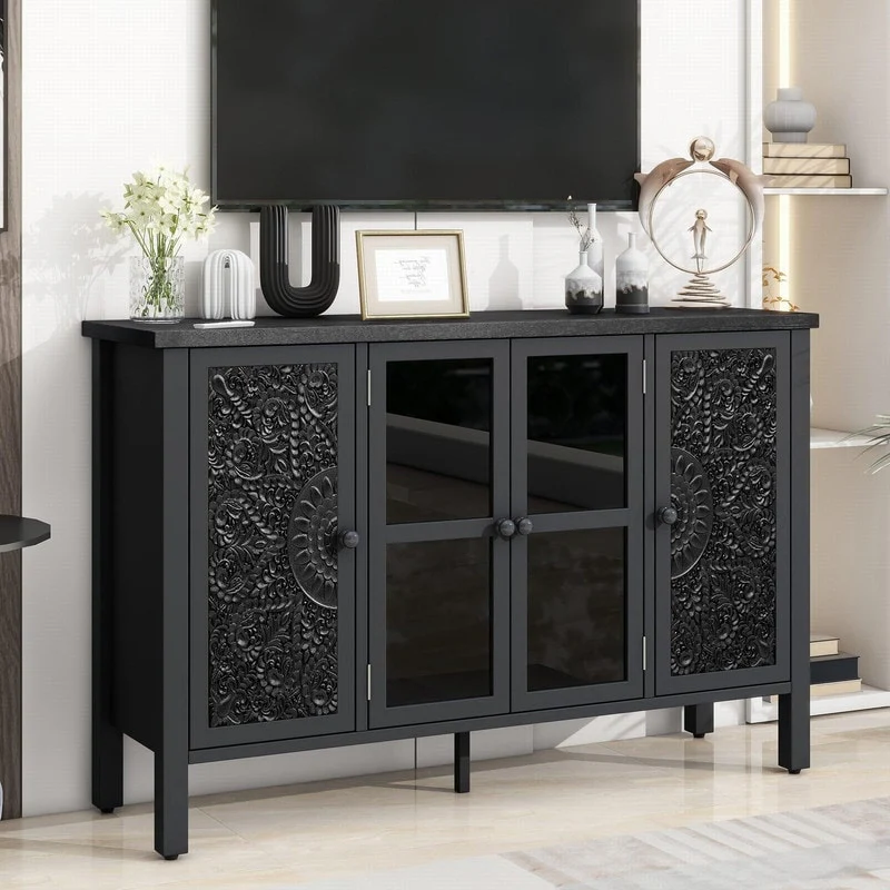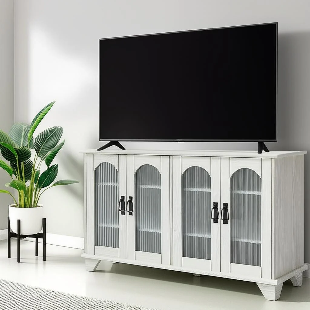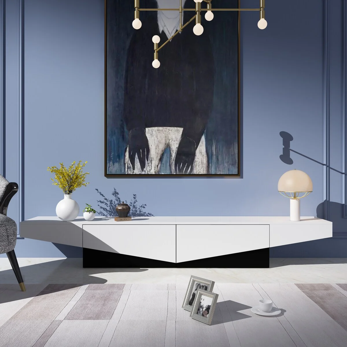 70 TV Stand with Cabinets & Gold Legs for TVs Up to 80