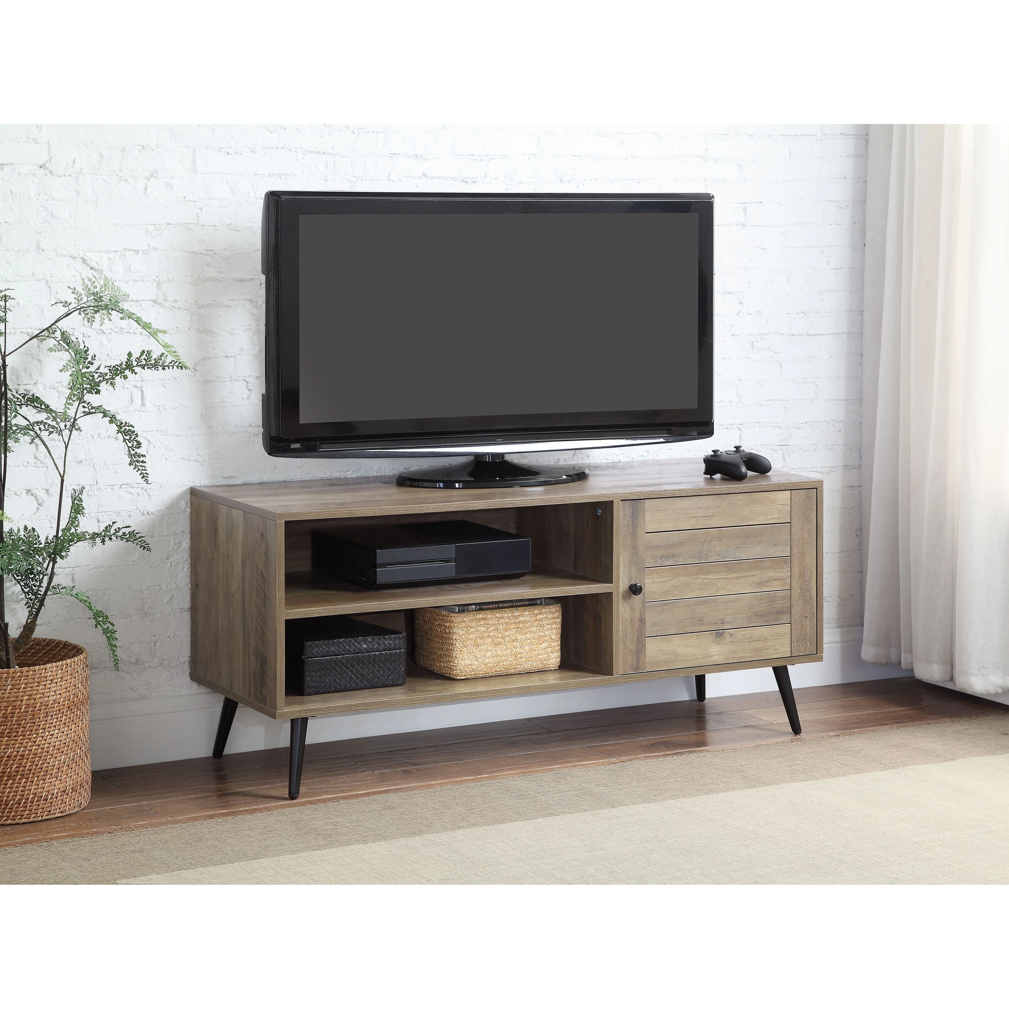 Oak 47 Modern TV Stand with Metal Frame & Shelf for TVs Up to 46