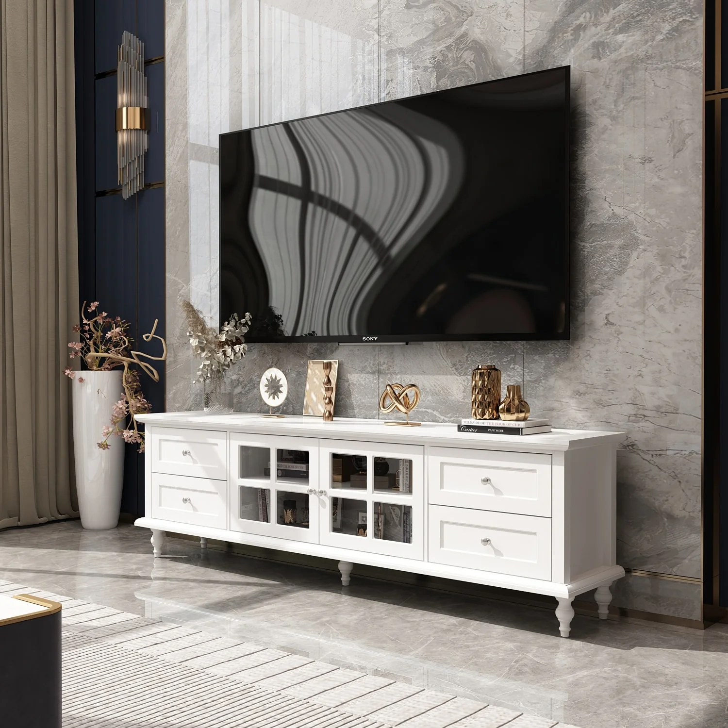 59 TV Stand with Diamond Mirror Doors & Storage for TVs Up to 65