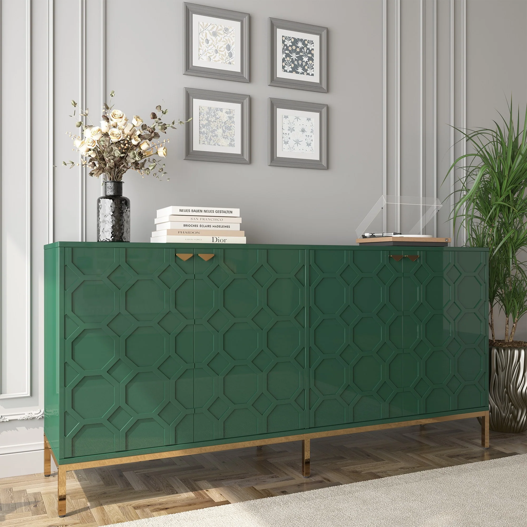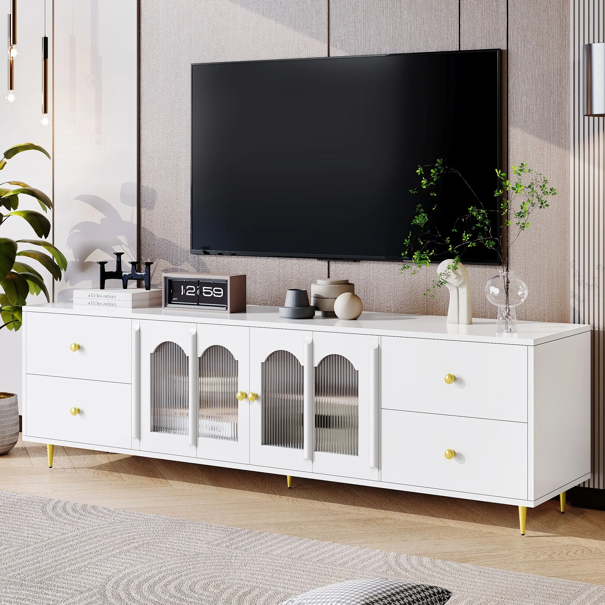 Clihome Storage High Gloss Entertainment Centers TV Stand, Sideboard
