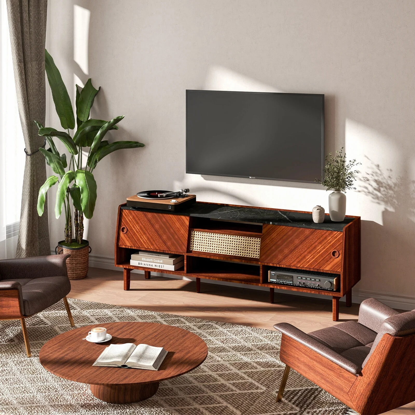 70 TV Stand with Glass Door, Drawers & Cabinets for TVs Up to 80