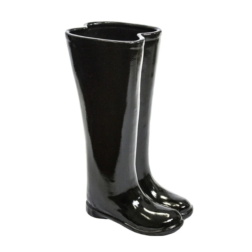 Black Lustrous Ceramic Boots Umbrella Stand