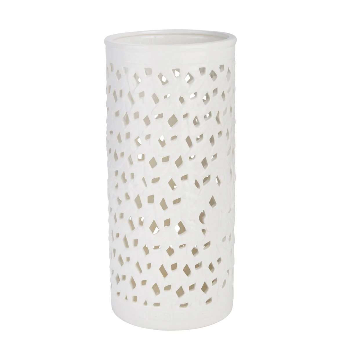 Ec, Pierced White Ceramicumbrella Stand 20.0H - 9.0 x 9.0 x 20.0