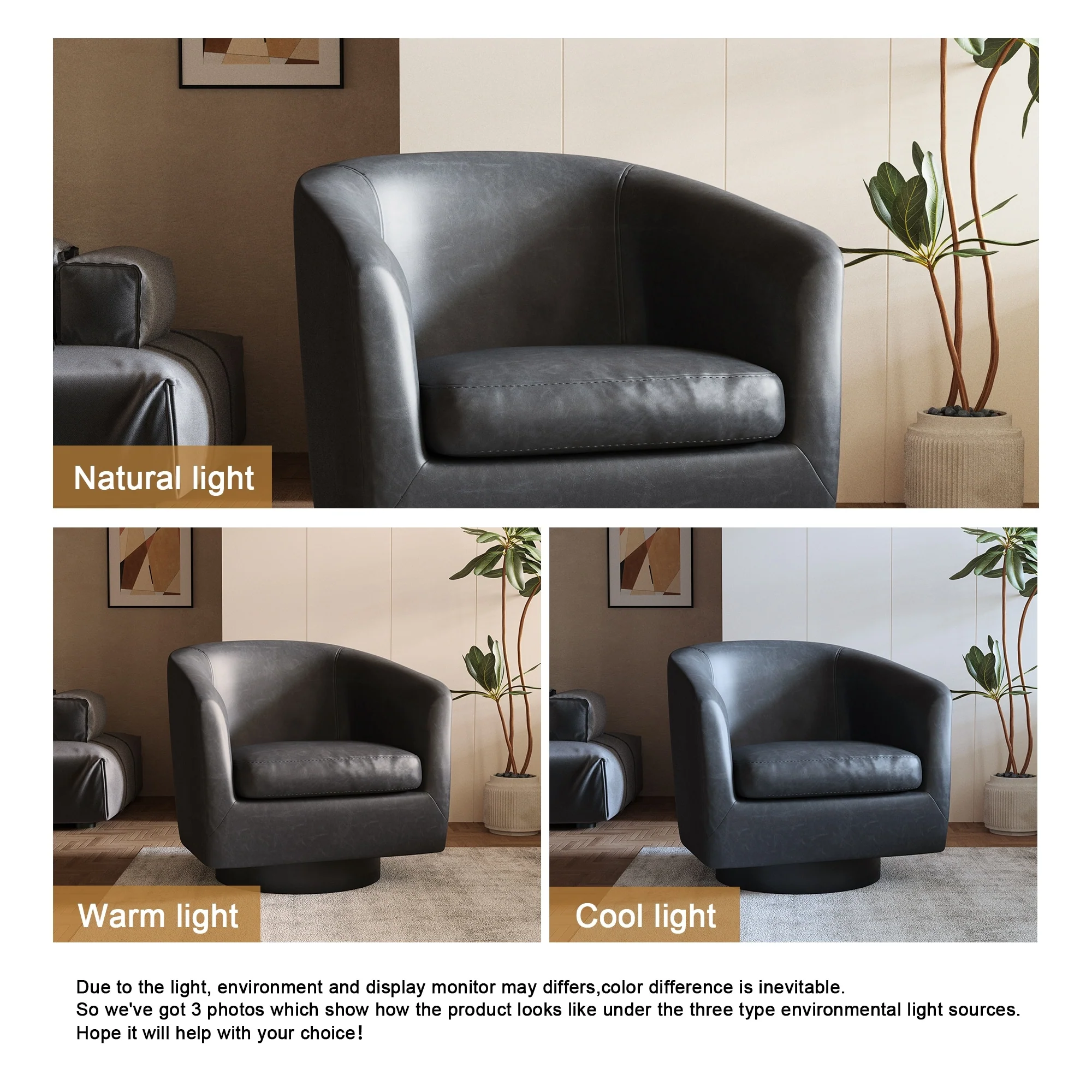 Round Barrel Armchair 360-Degree Swivel Accent Chairs